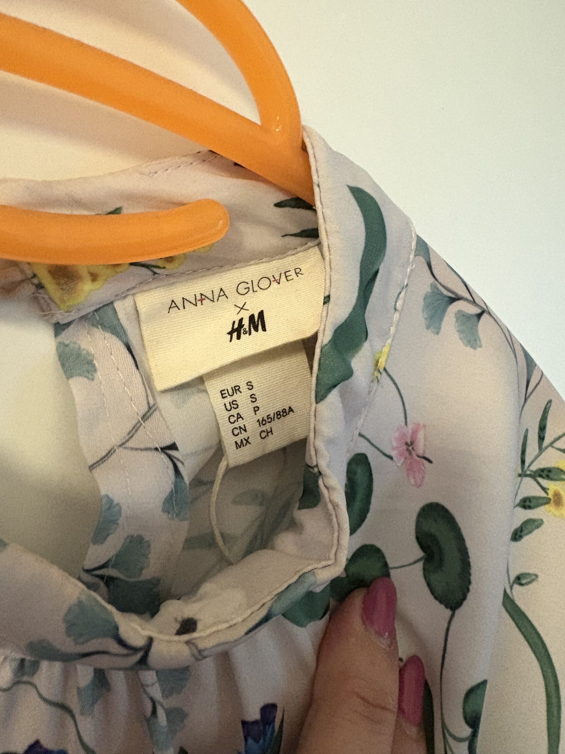 “שמלת/חולצת Anna Glover ל-H&M – הדפס פרחים אמנותי, מידה S, מצב מצוין 🌸
