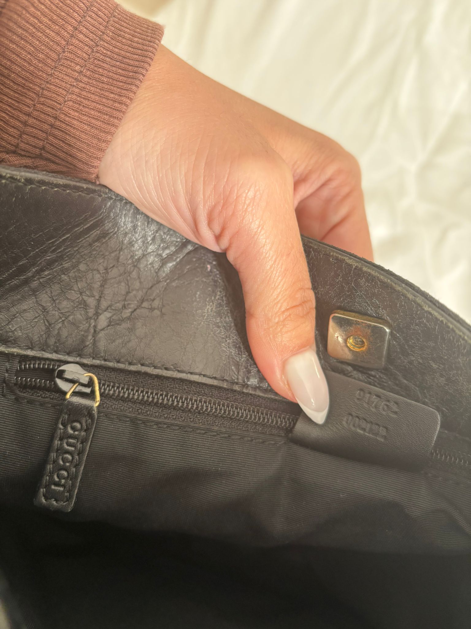 תיק גוצ׳י במצב שמור מאוד. יש מעט סימני שימוש בחלקי העור.