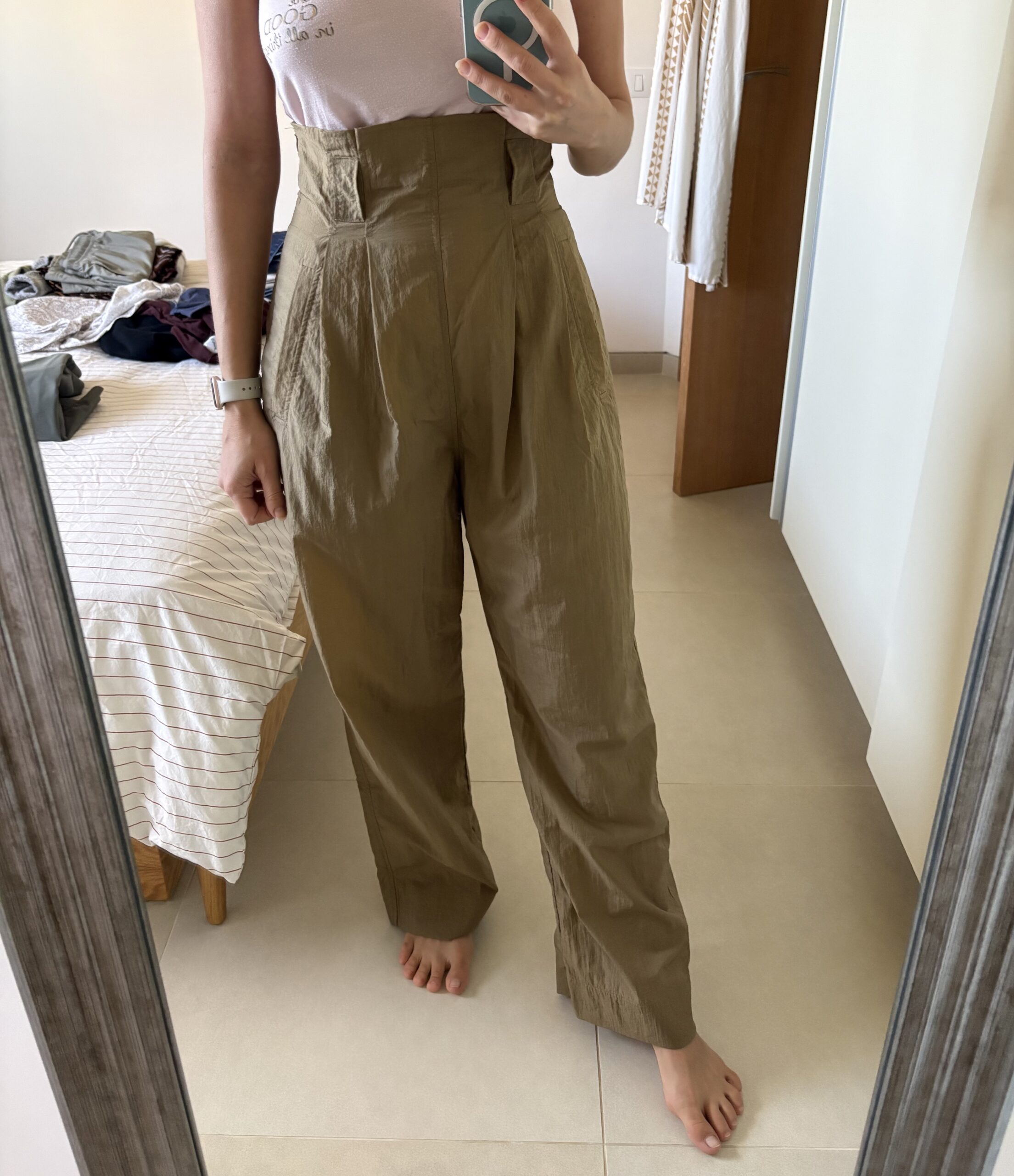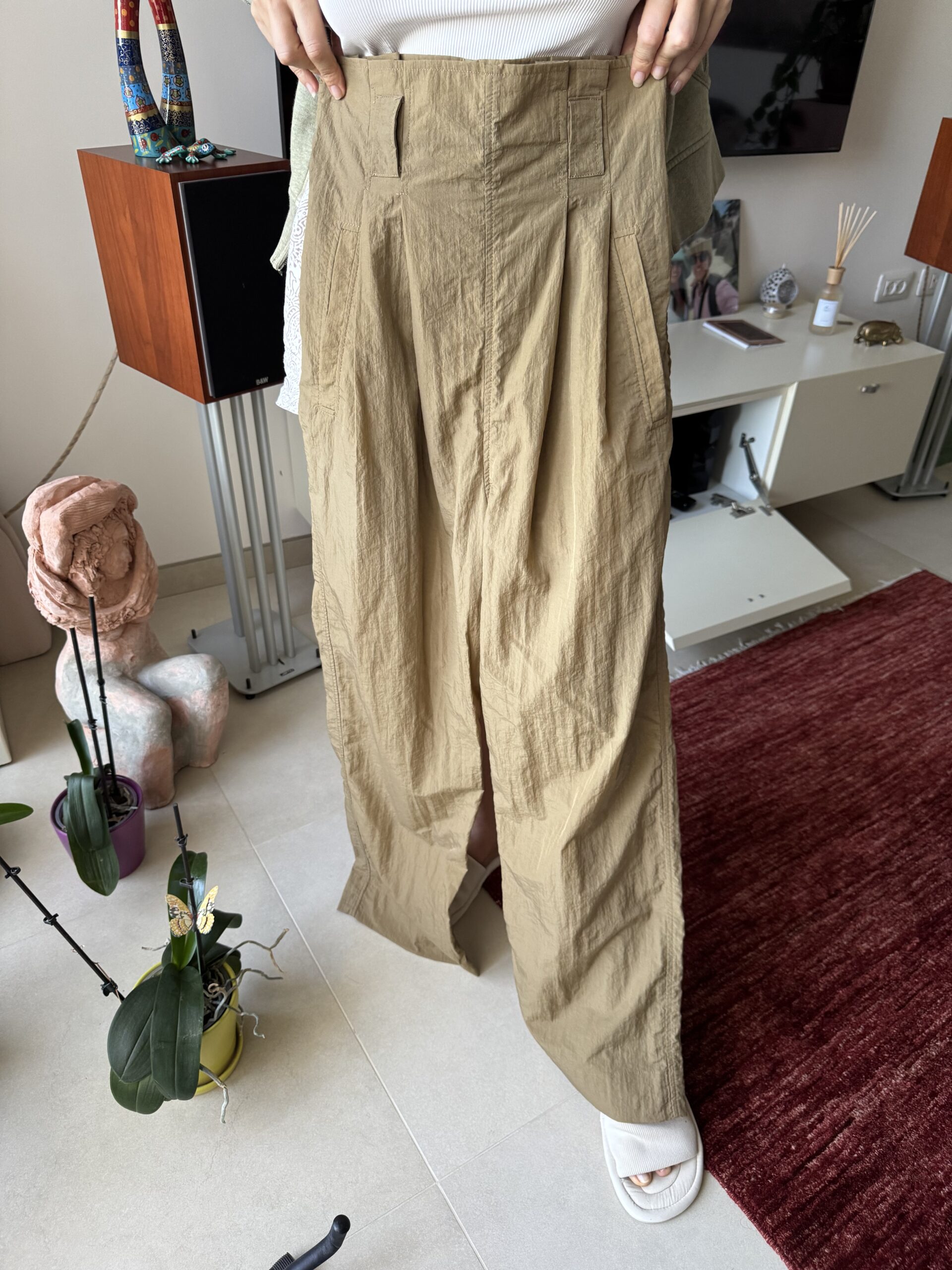 מכנס חדש ומהמם של גאני! לא נלבש אף פעם. בד ניילון, צבע ירוק זית מבריק, מותן גבוהה.