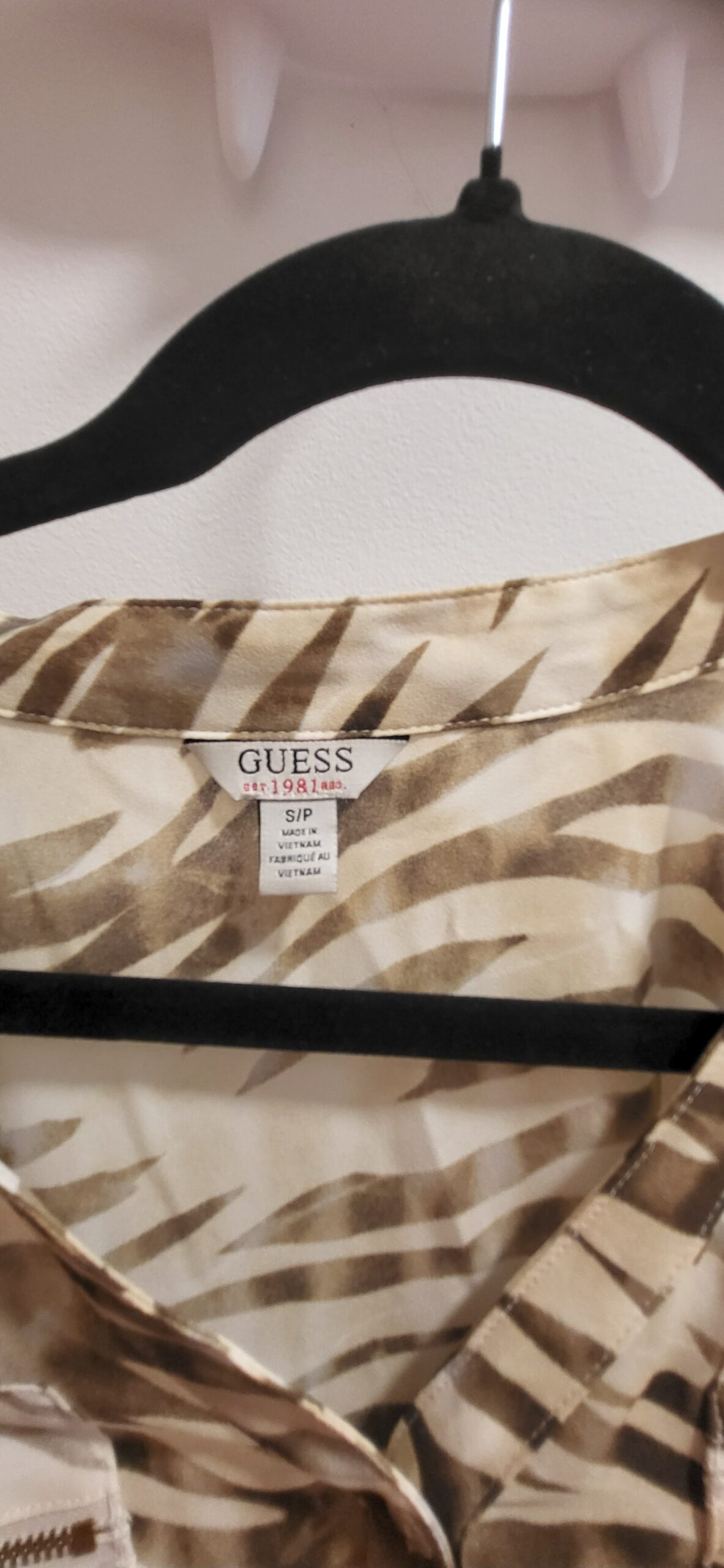 חולצת ממותג GUESS עם עיצוב טיגר חןם וביז עם רוחסן קצר ושרבולים שרוולים שלושה רבעים