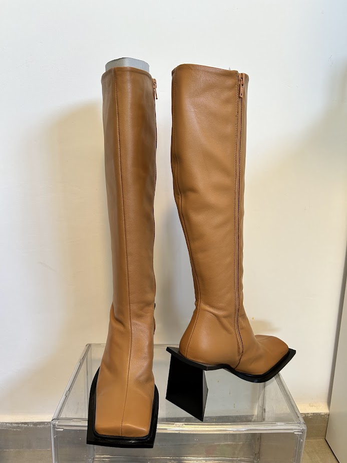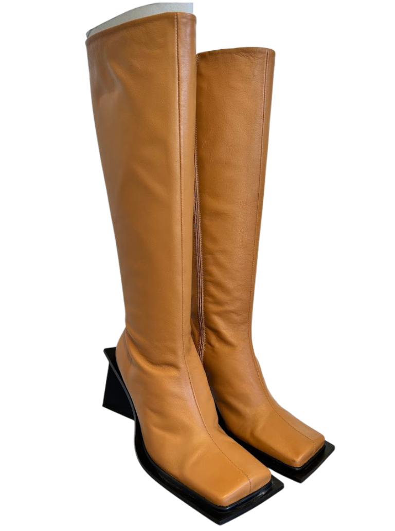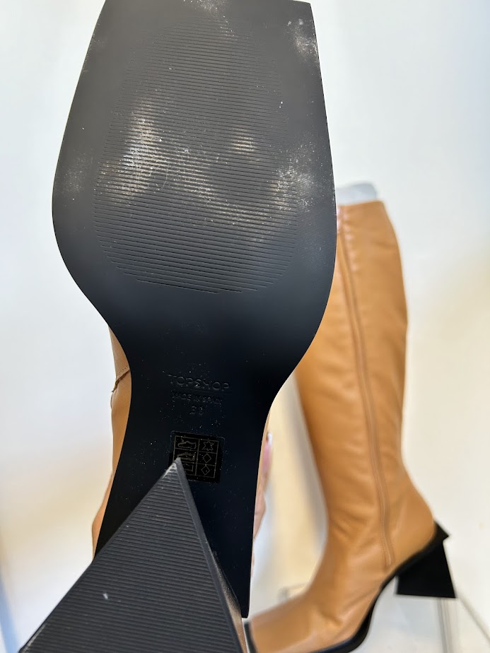 מגפיים גבוהים מעור כבש אמיתי. צבע קרמל יפהפה. מחפש פריט ייחודי למלתחת החורף שלך, זה זה! מעולם לא נעשה בו שימוש, נרכש ב-ASOS. גובה עקב: 7 ס”מ