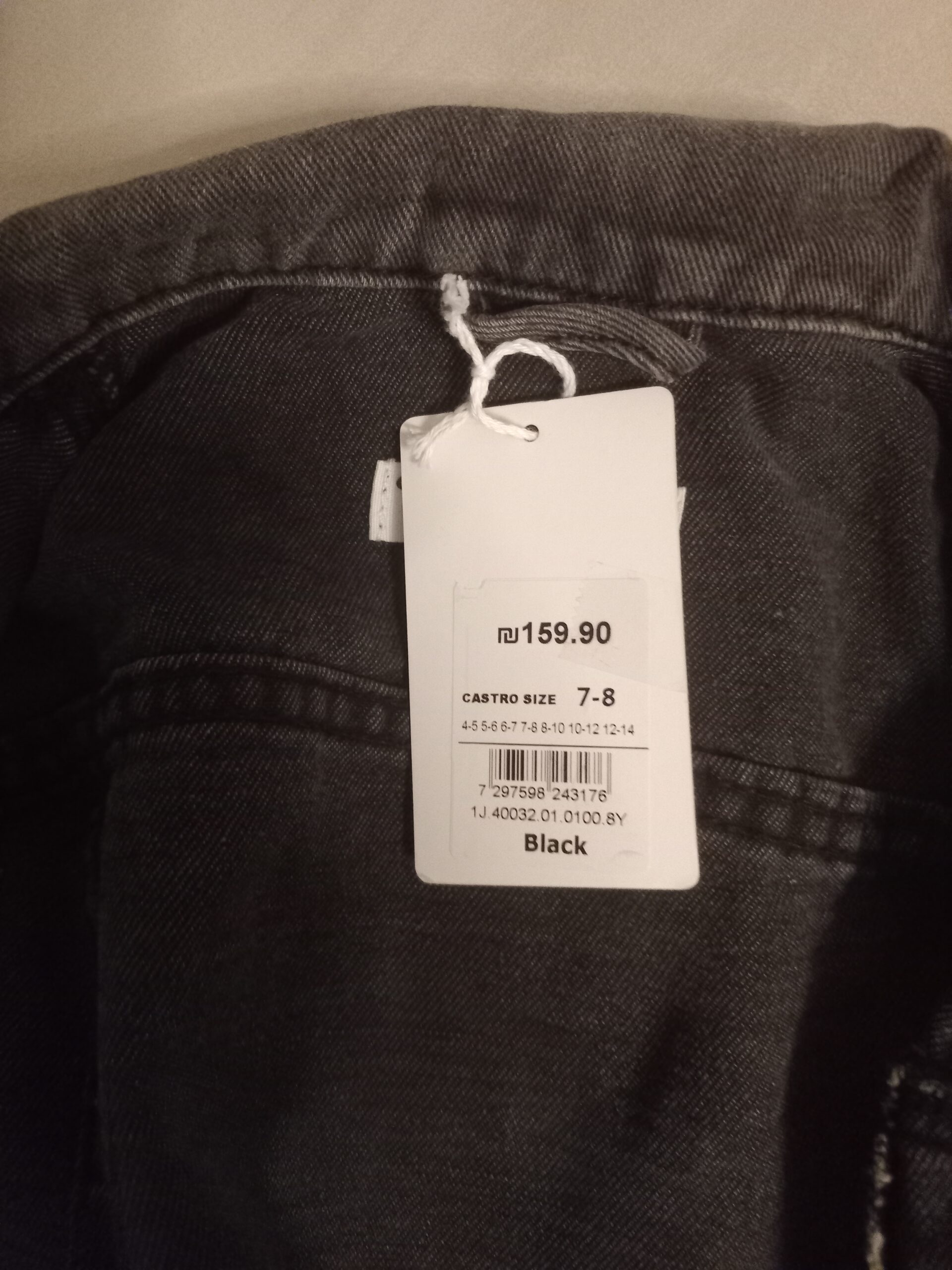 ג’קט ג’ינס שחור של קסטרו מידה 7-8 (גדול). נלבש פעם אחת. שמור במצב מצוין כחדש
