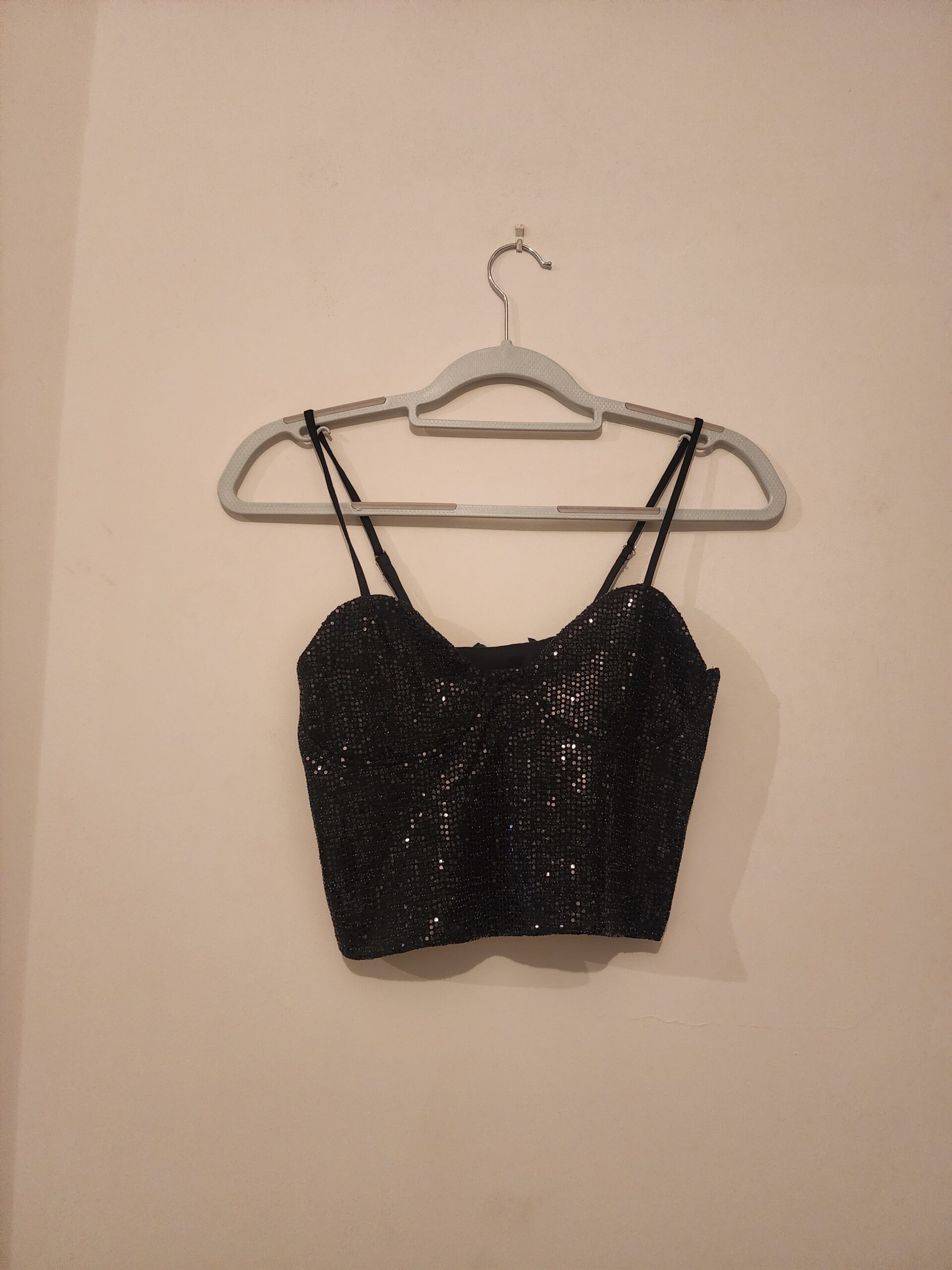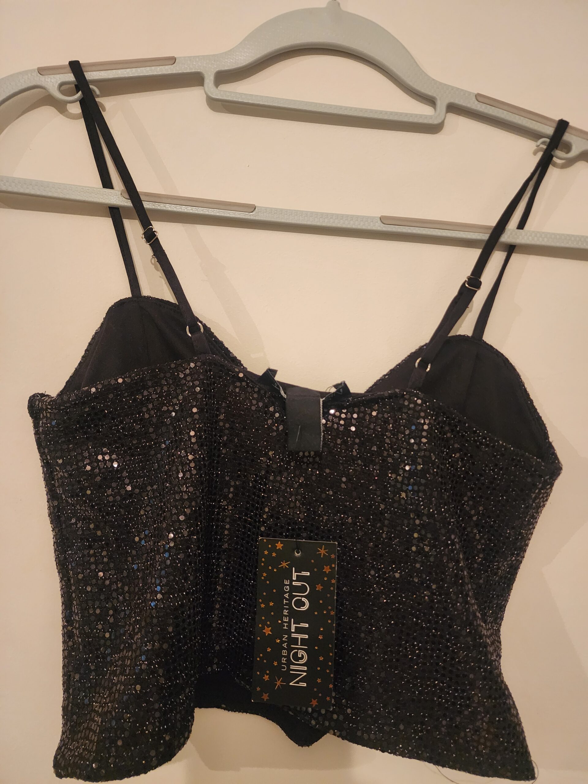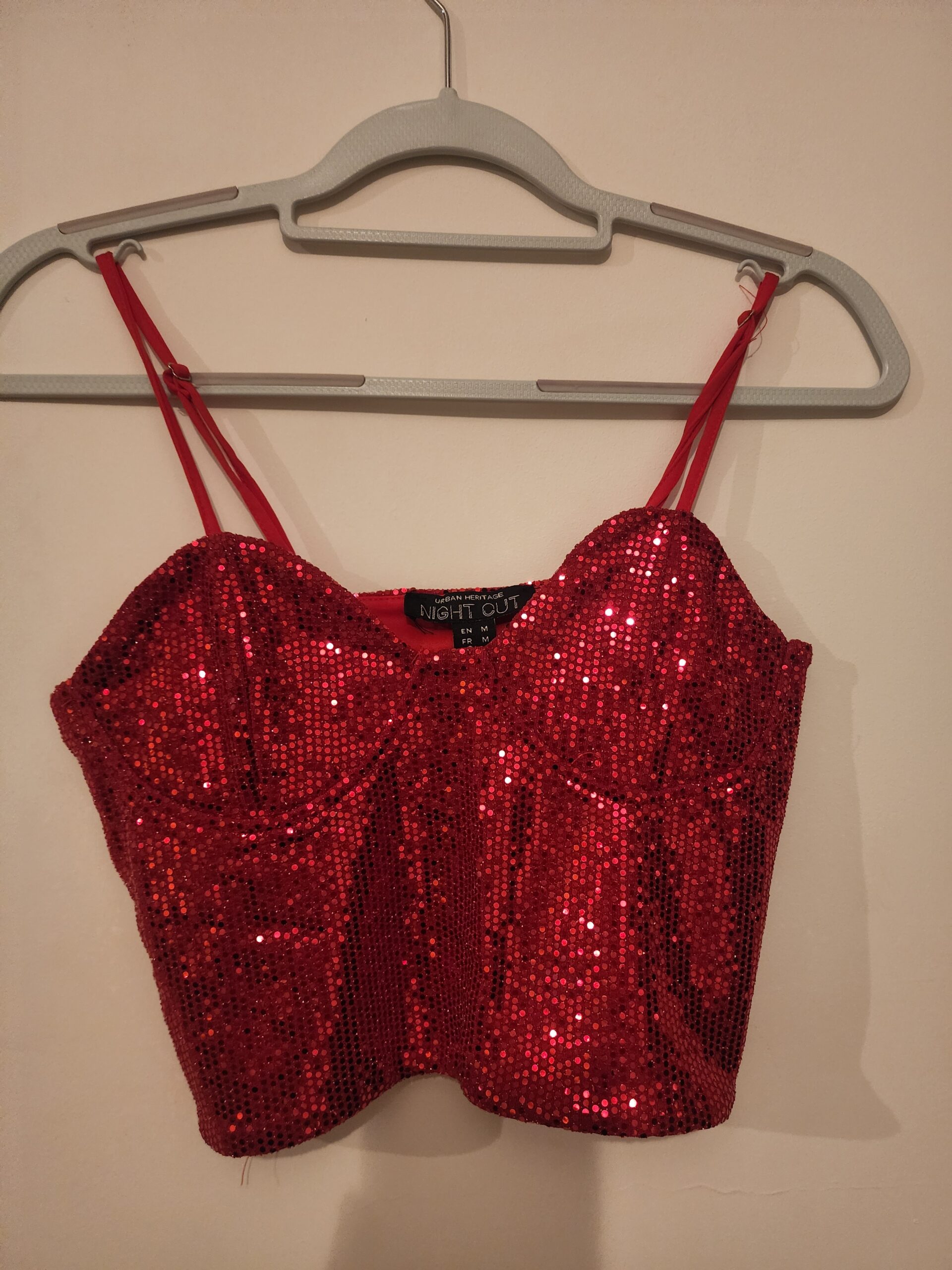 2 קרופ טופ מנצנצים מאורבניקה, אדום מידה m שחור מידה s, מחיר מקורי 30 ש”ח כל אחד.