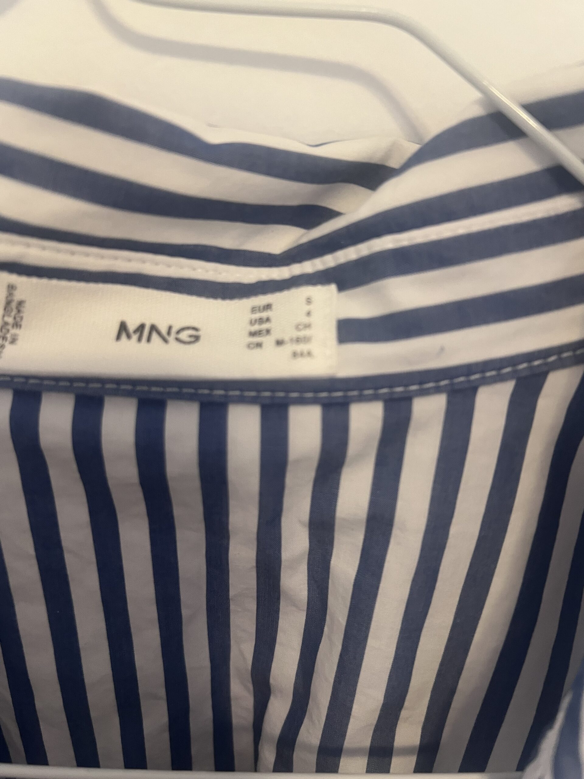 חולצה מכופתרת בגזרה מעט רחבה, פסים כחול לבן.