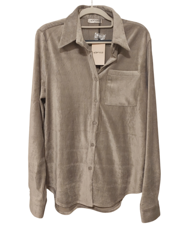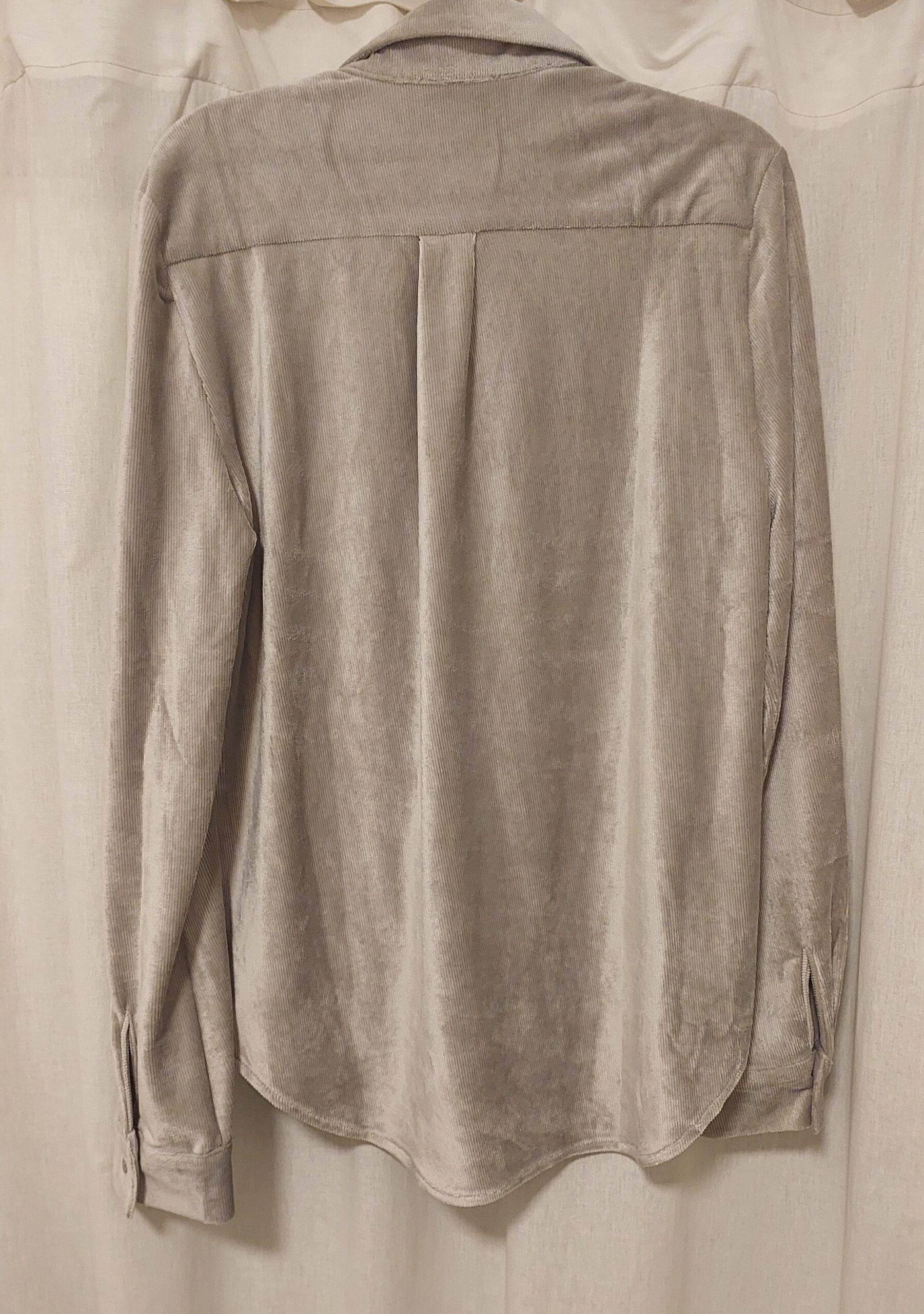 חולצה מכופתרת מבד קורדרוי כסוף מידה m במראה מעט רחב (תתאים גם לL)