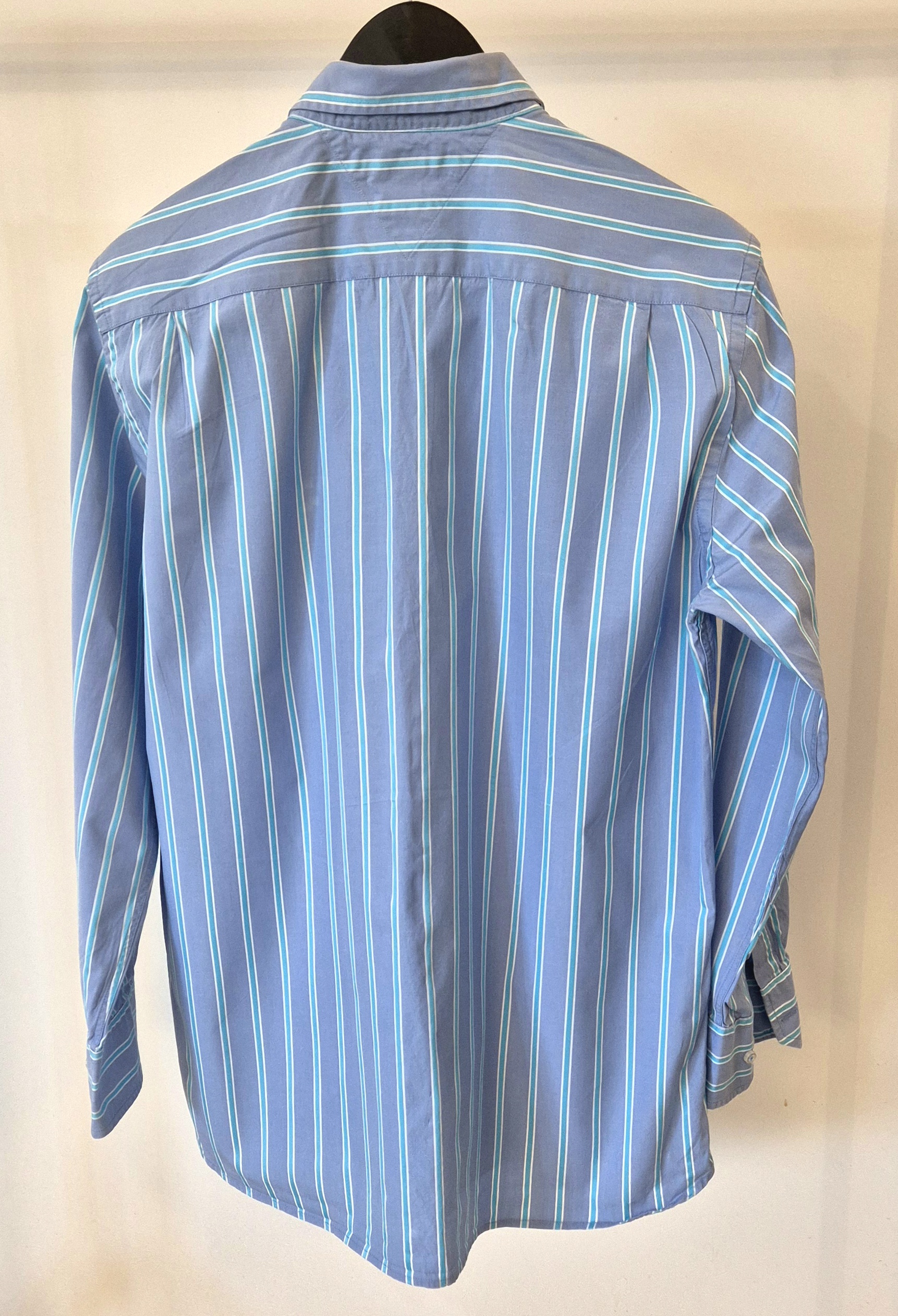 חולצה מכופתרת ארוכה פסים כחול טורקיז בהיר