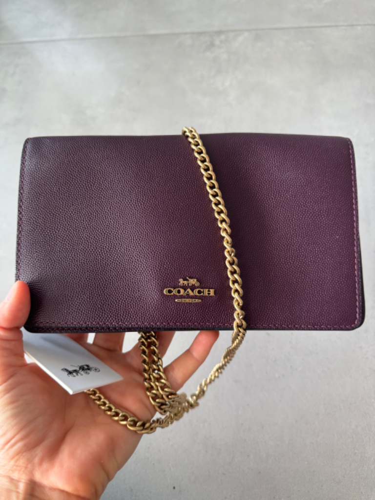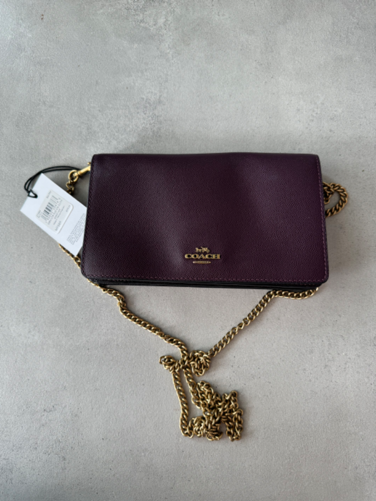 Coach burgundy leather fold over clutch
