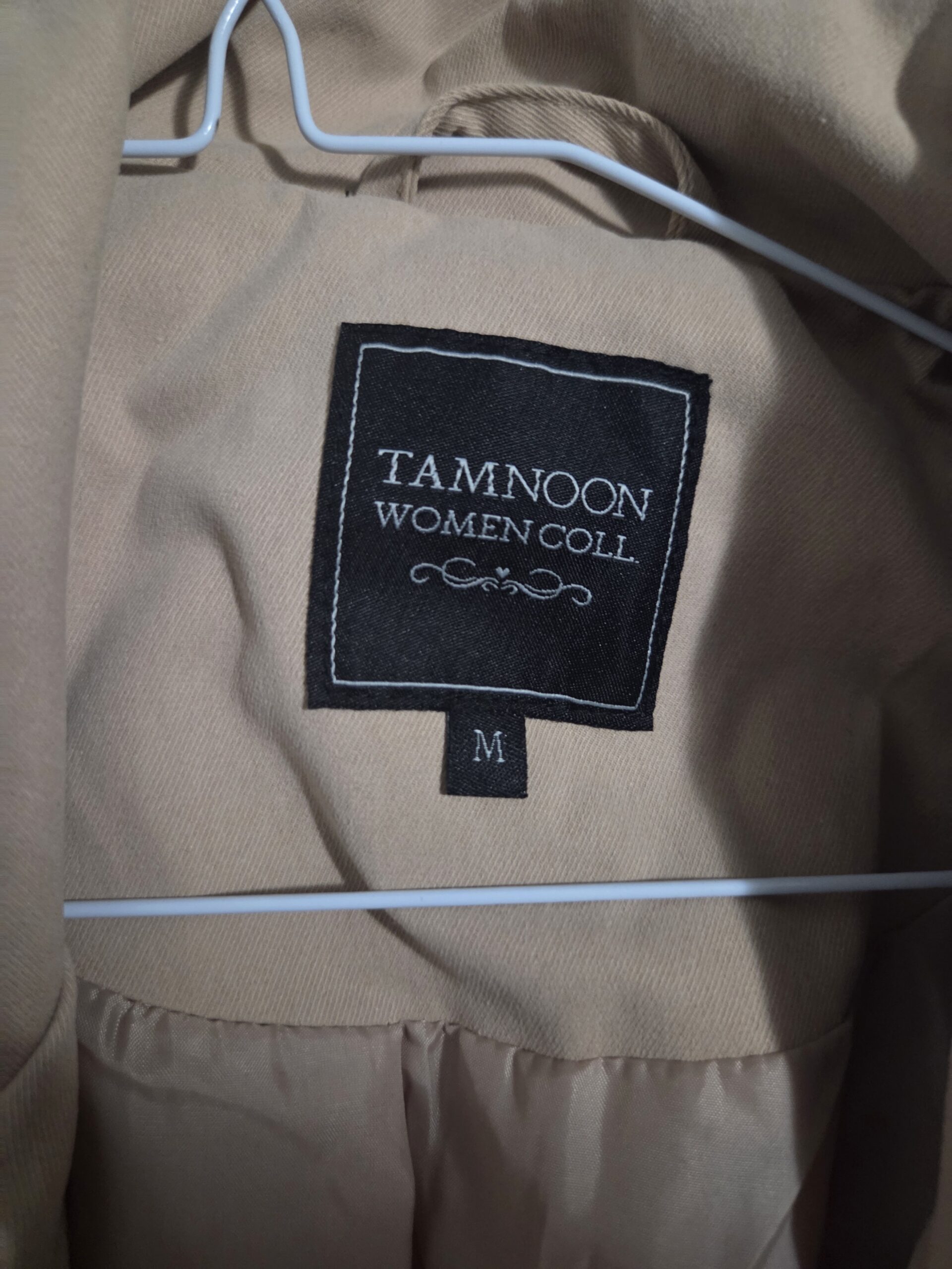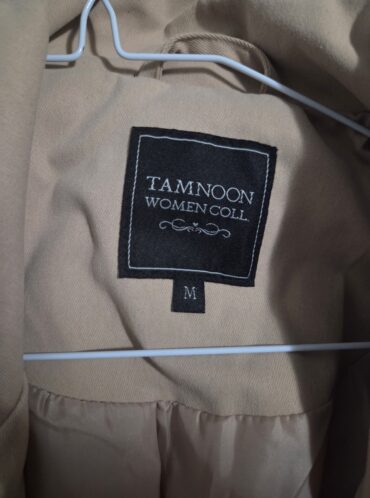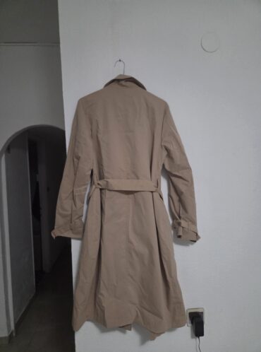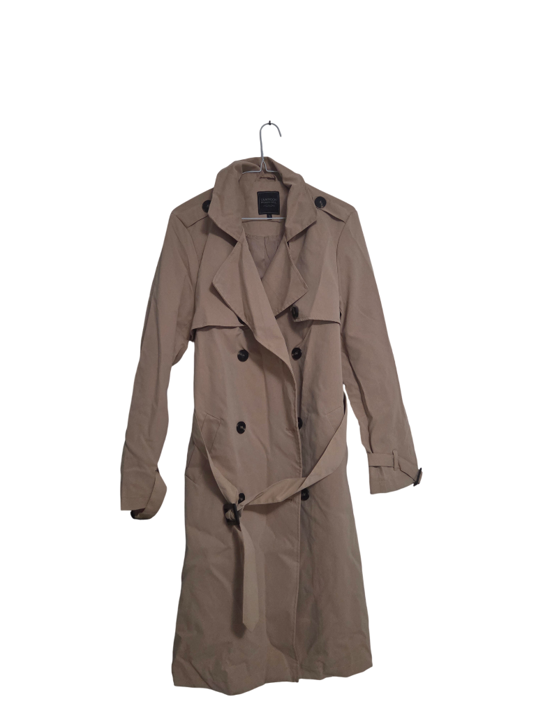 מעיל טרנץ׳ בצבע בז׳ עם חגורה.