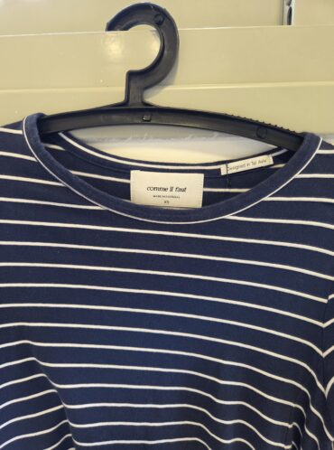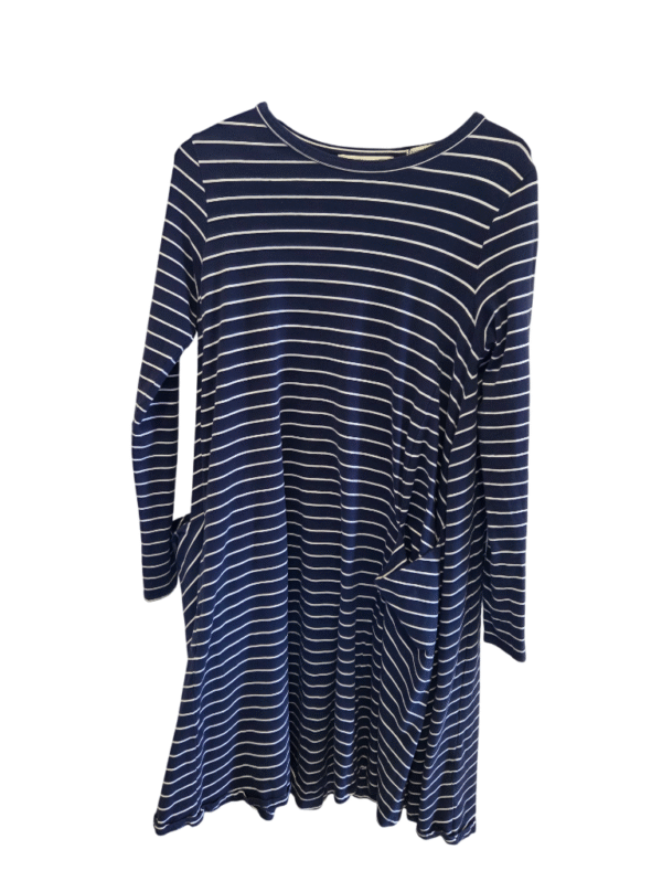 שמלת מידי כיפית ואוורירית עם כיסים מכותנה. צבע כחול כהה עם פסים. מידה xs.