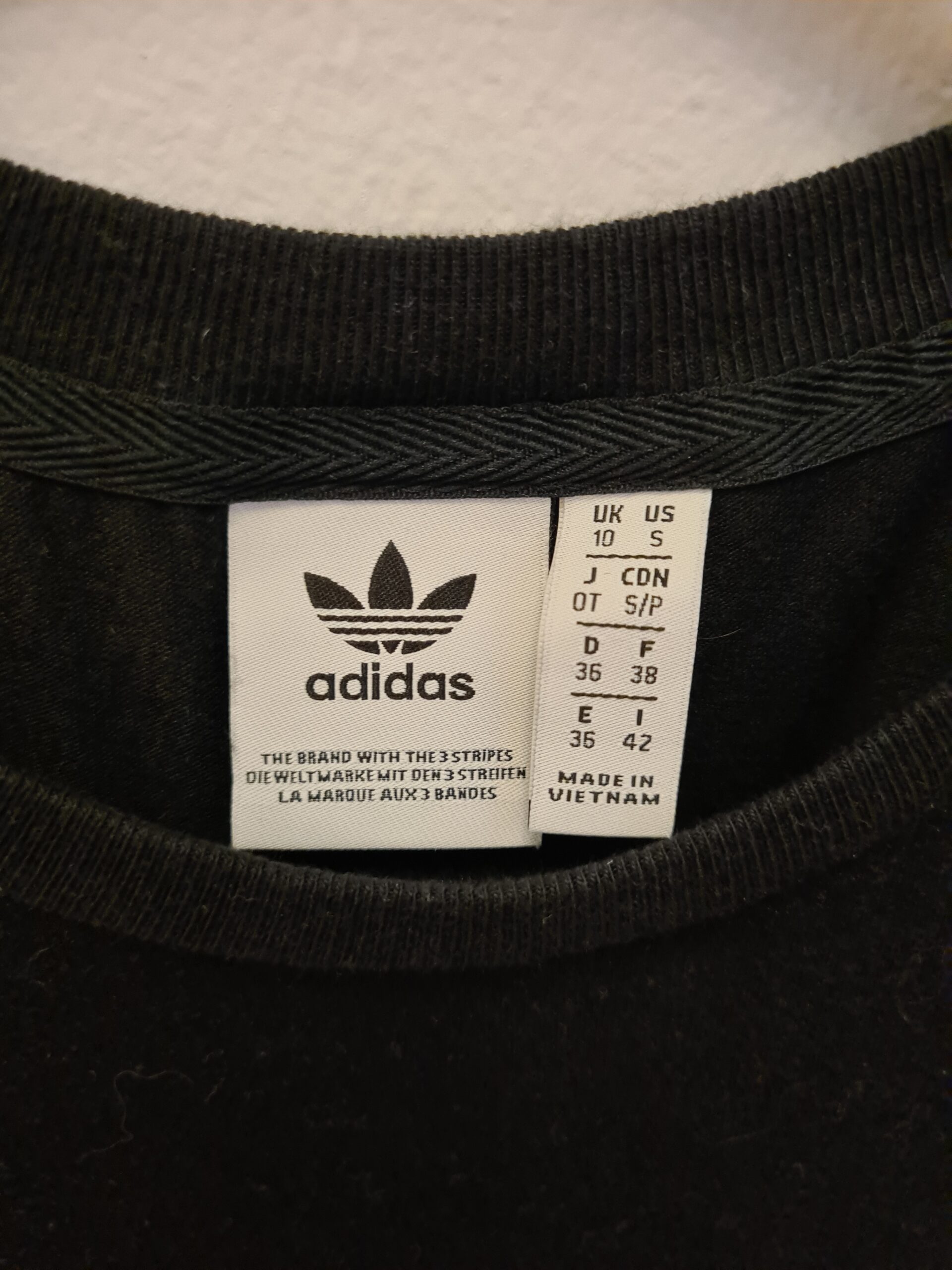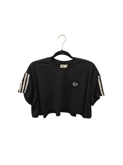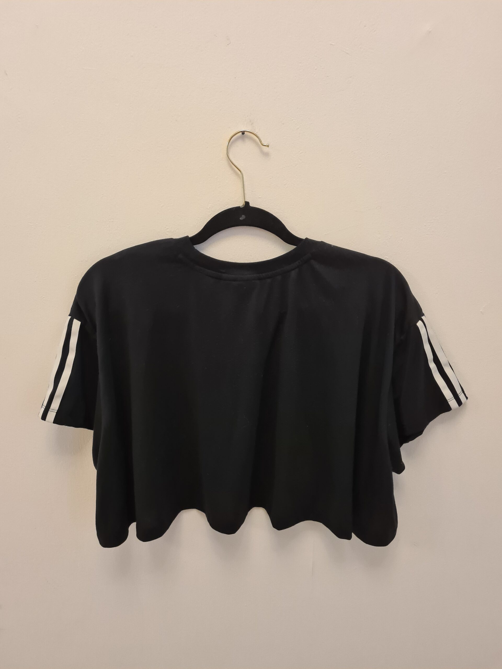 חולצת בטן עם שרוולים קצרים של אדידס. עם לוגו רקום ו3 פסים בשרוול. מתאימה לספורט אבל גם ליומיום. מידה s,36.