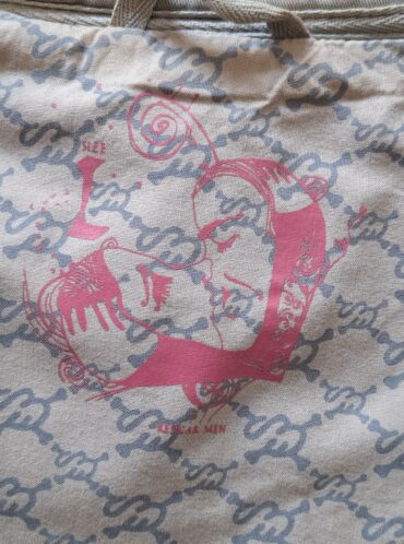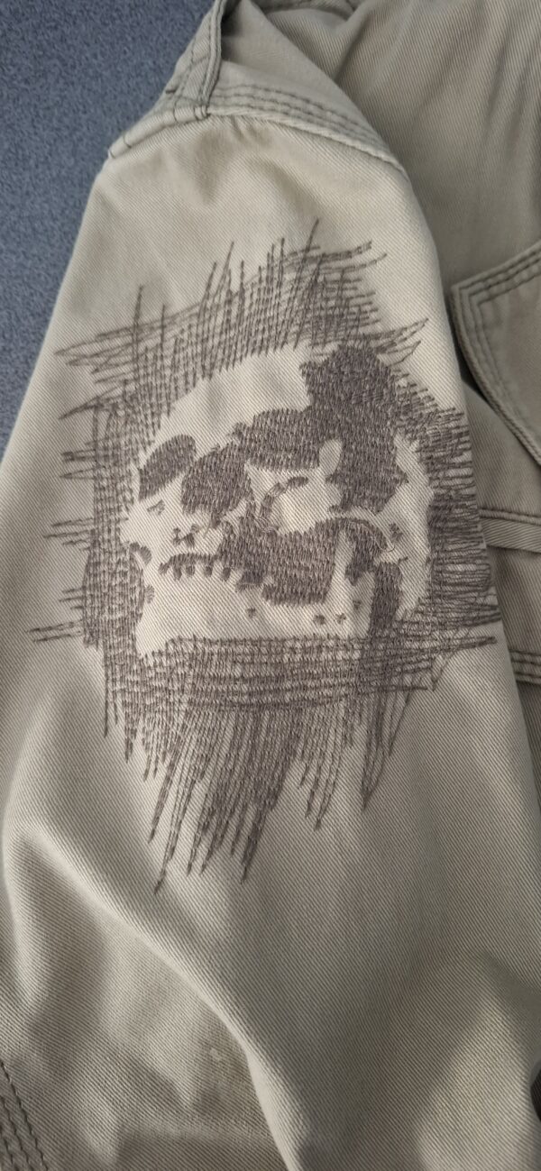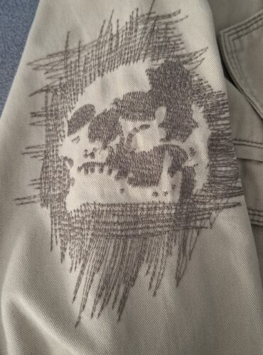 עם עיטורים וציור גולגולת בצד השרוול בעיצוב ‘מקושקש’.