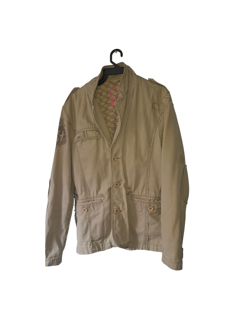 ז’קט במידה L לגברים בסגנון גראנג’י-צבא בצבע ירוק-זהב (בשמו הרשמי לפי אתר טמבור נקרא: YUMA GOLD ),