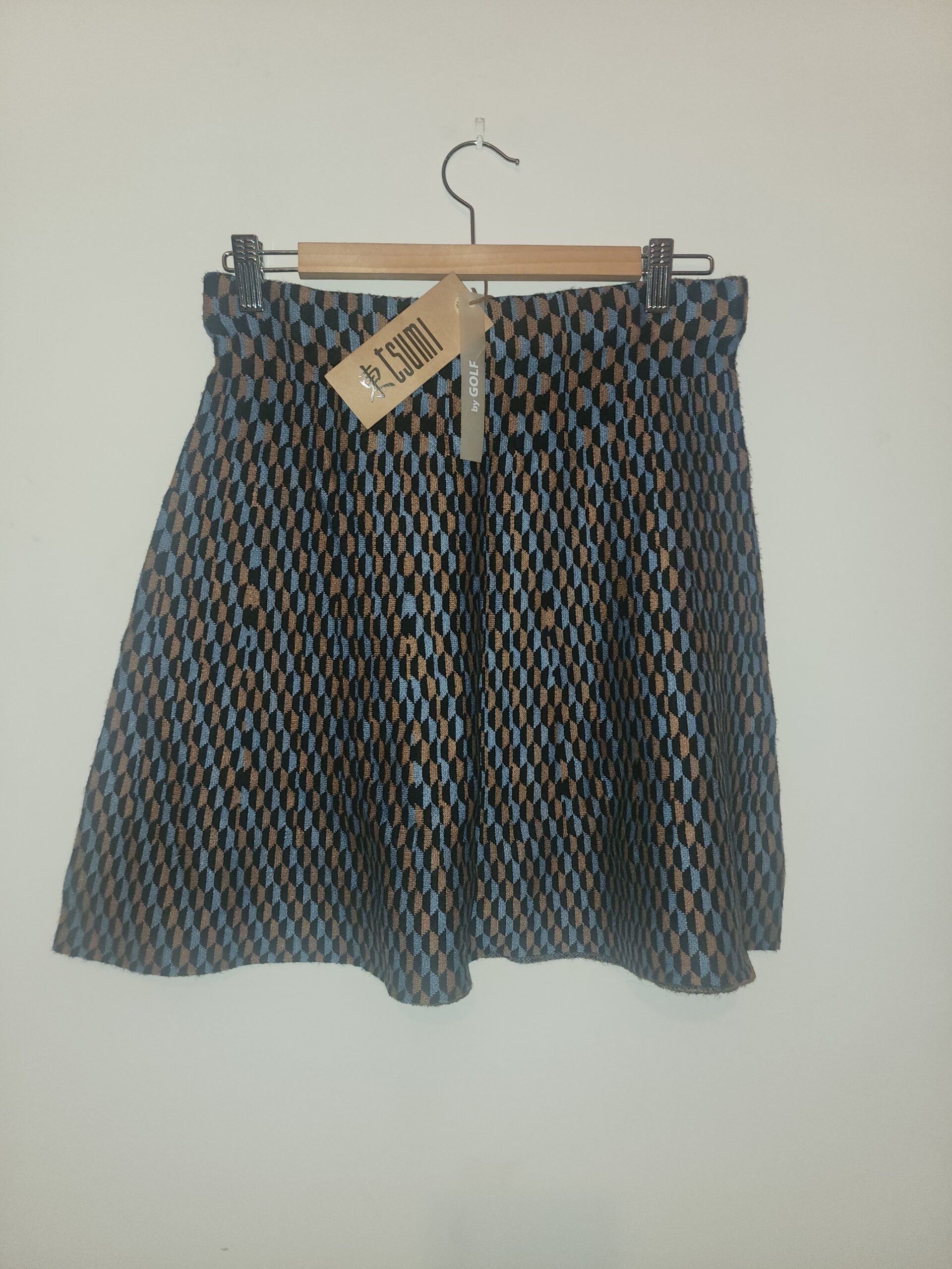 חצאית צבעונית סטייל רטרו, מידה S, מותג Golf מעין בד סריגי.