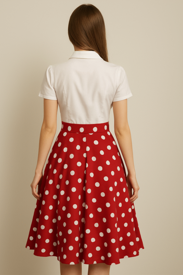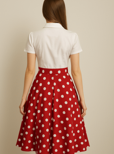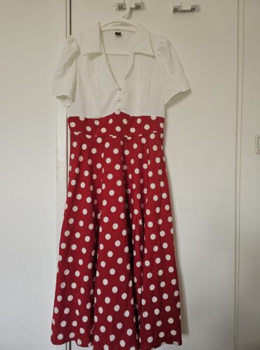 שמלת ויטאג’ סטייל שנות השישים. שימו לב שהמתניים צרים ואין בטנה מתרחבת מתחת.