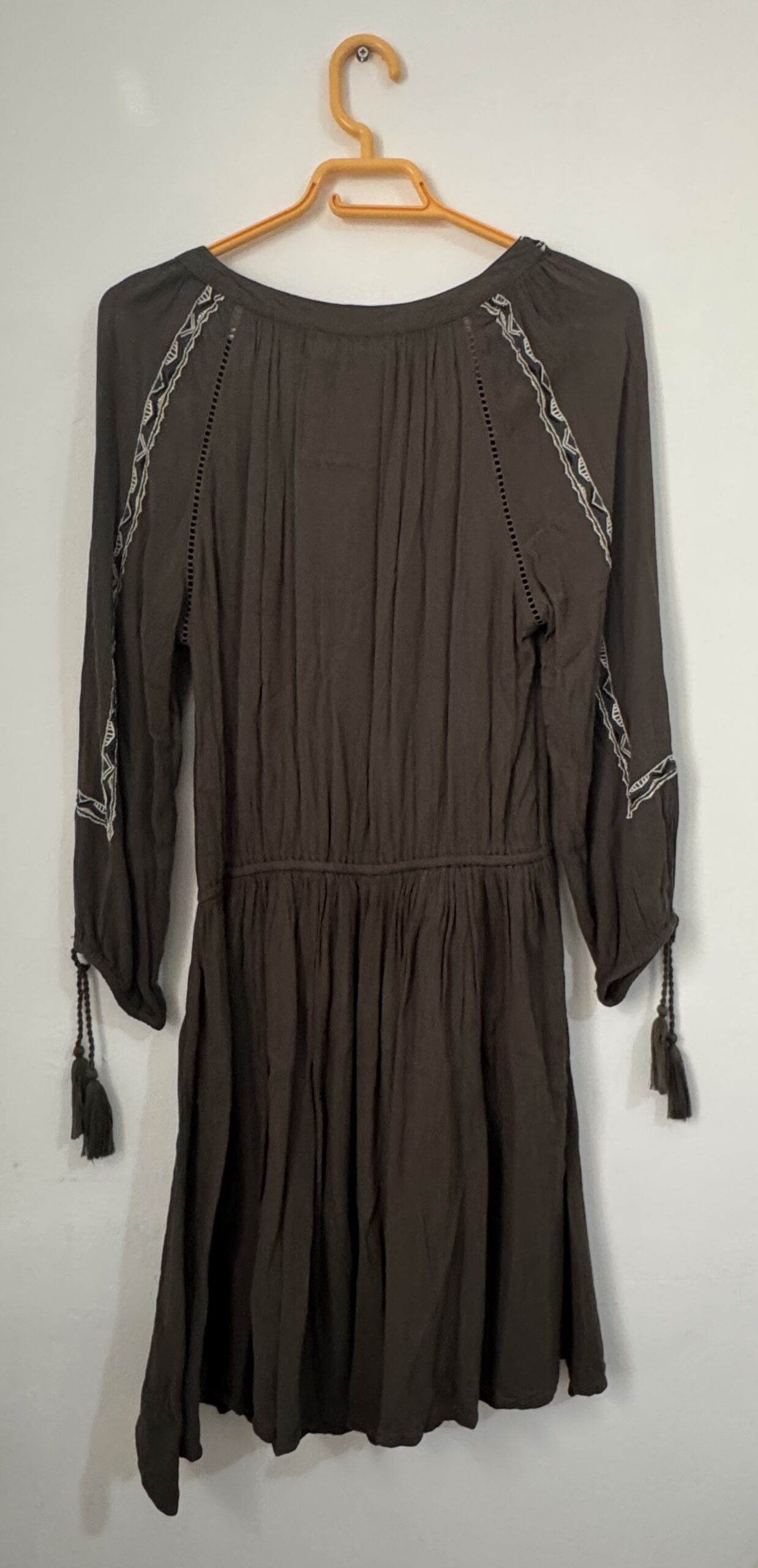 שמלה מיוחדת בסגנון בוהו שיק, גוון ירוק חאקי, בטנה מכותנה