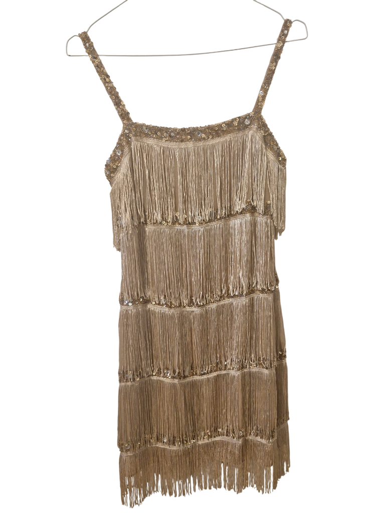 שמלה קוקטייל יפהפייה בסגנון שנות ה־30: קצרה, עם גב חשוף, רקועה בחרוזים מנצנצים. מושלמת לרקוד איתה כל הלילה!