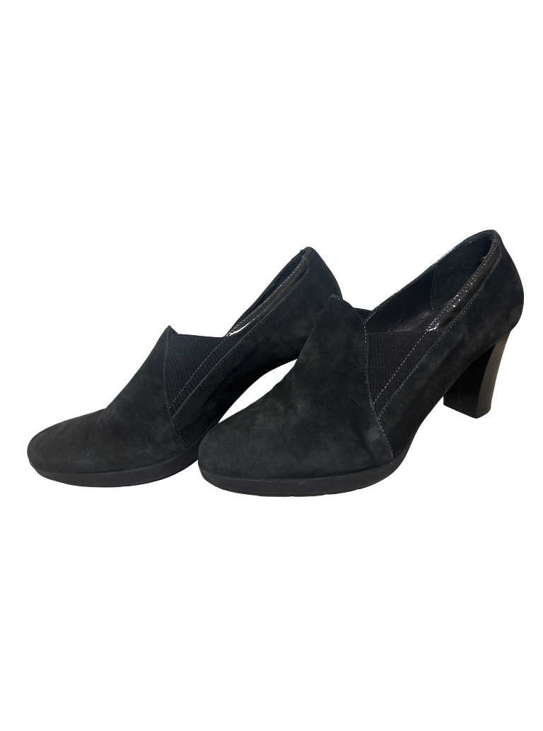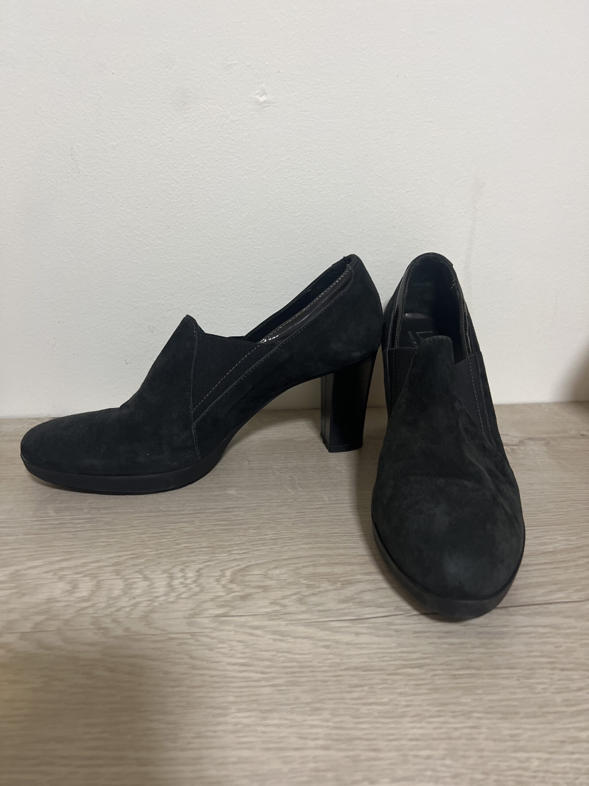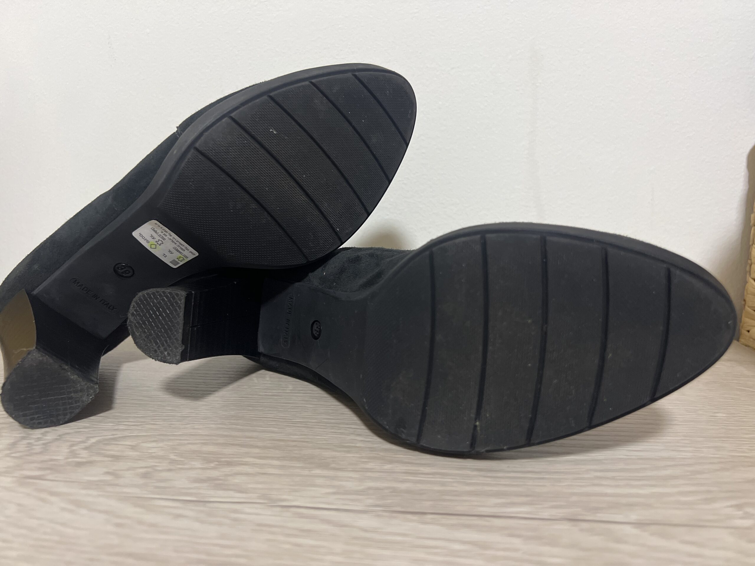 נעל עקב שחורה אלגנטית עם עקב עבה ננעלה מספר פעמים בודדות