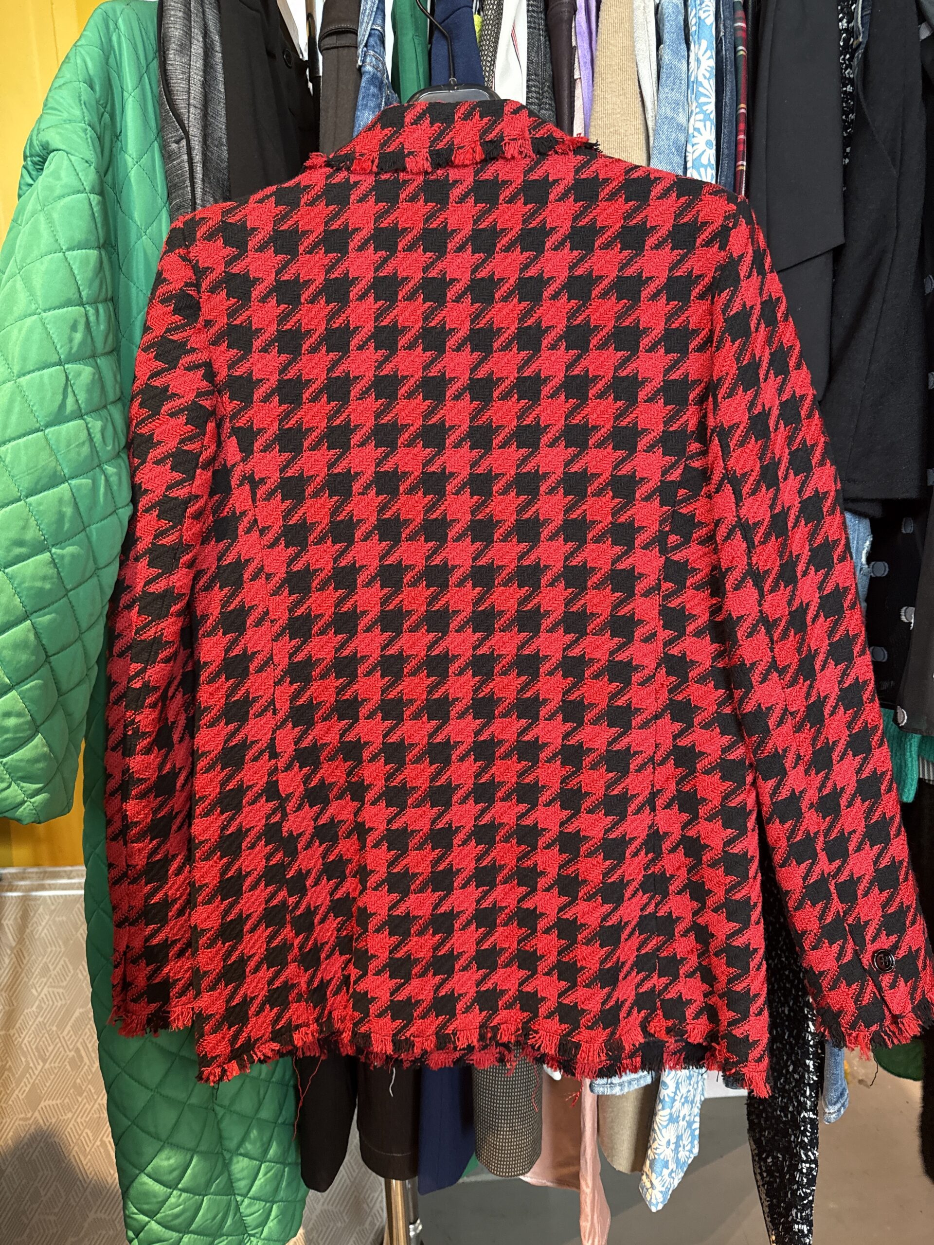 ג׳קט מחויט בסגנון של Chanel, בעל גזרה מאוד מחמיאה. מסוגל להקפיץ כל אוטפיט לשלב הבא! קל לשילוב גם עם ג׳ינס ליציאה בערב וגם עם מכנס שחור קלאסי לעבודה. בקיצור חובה בכל ארון.