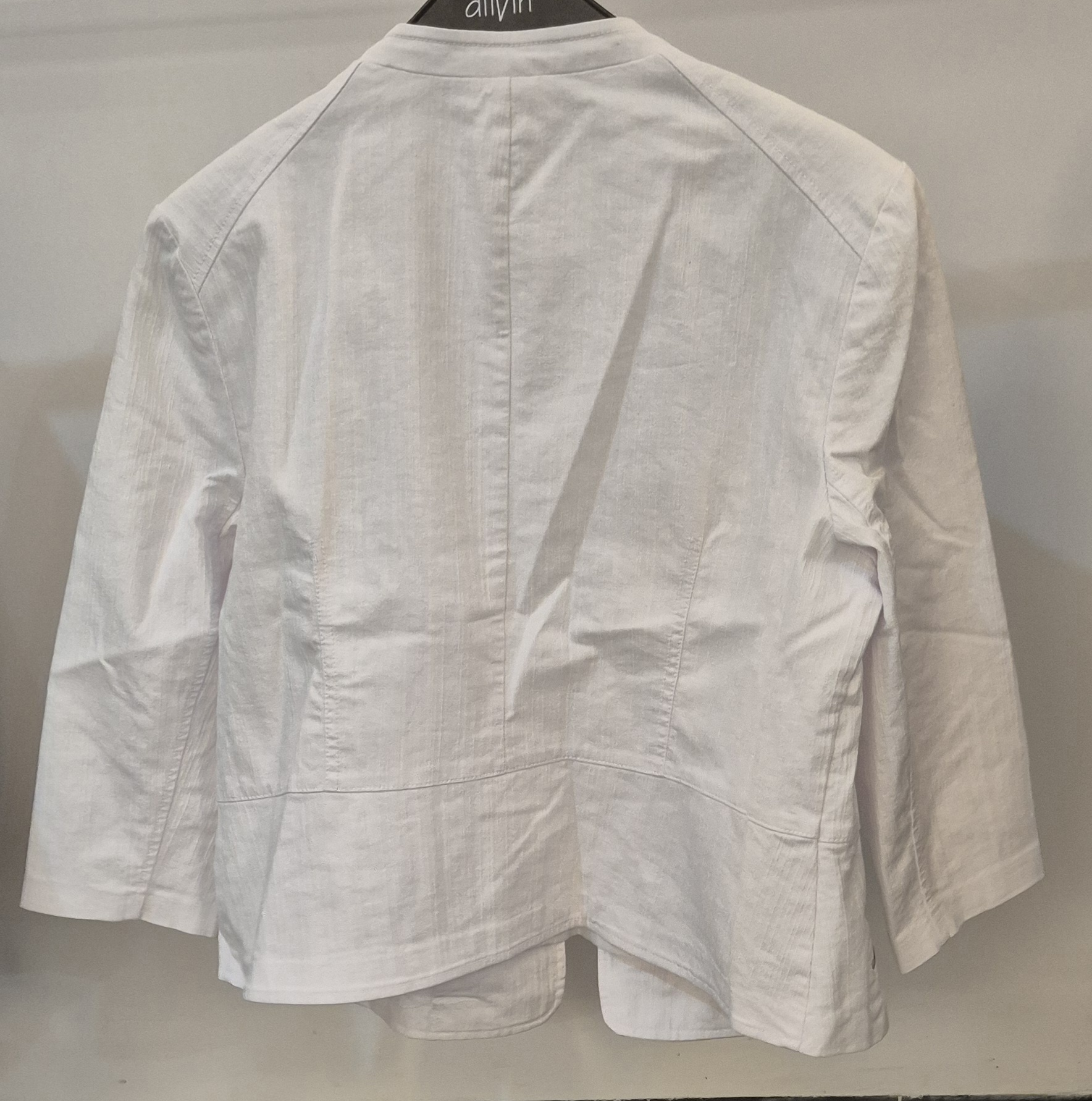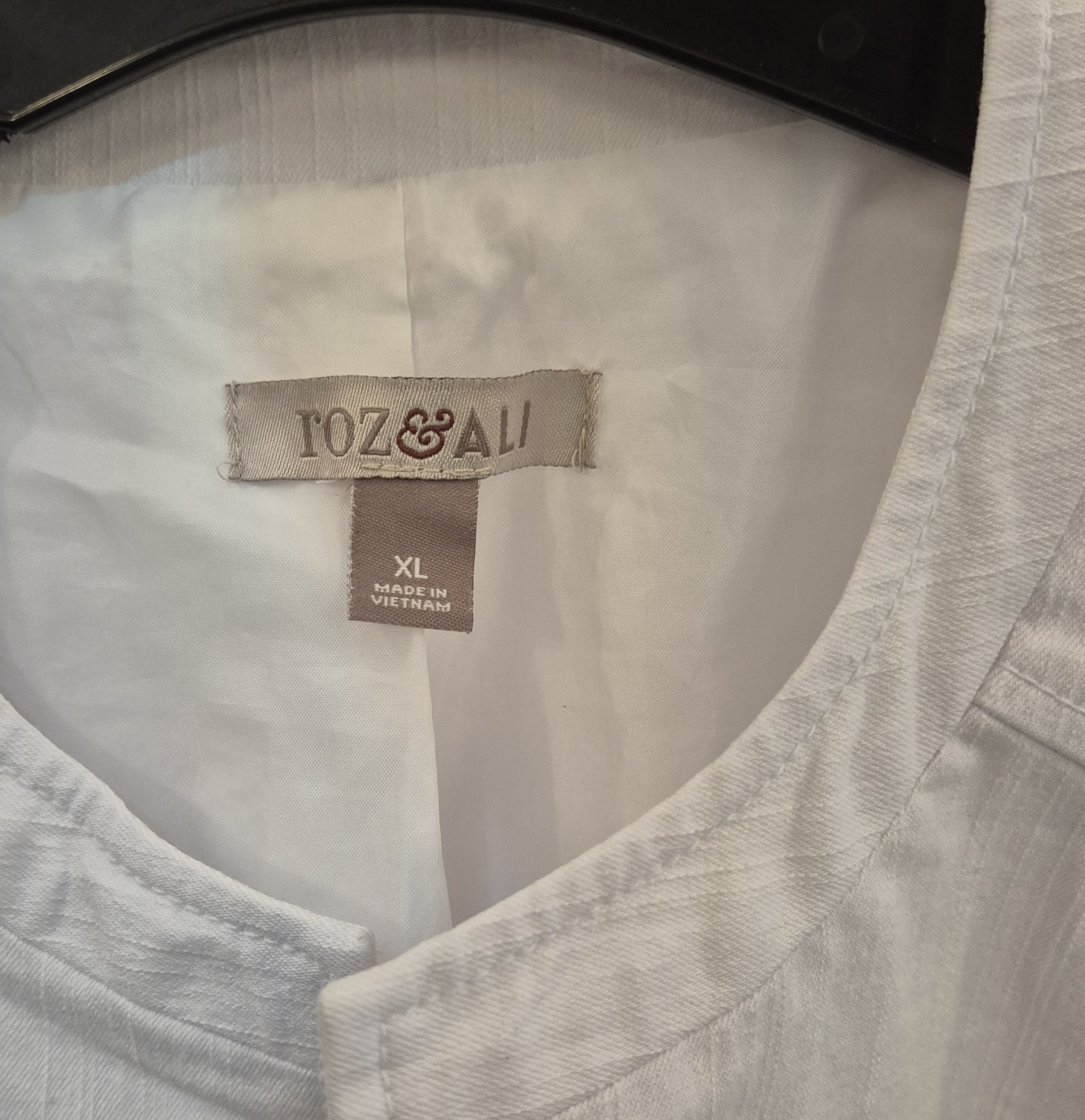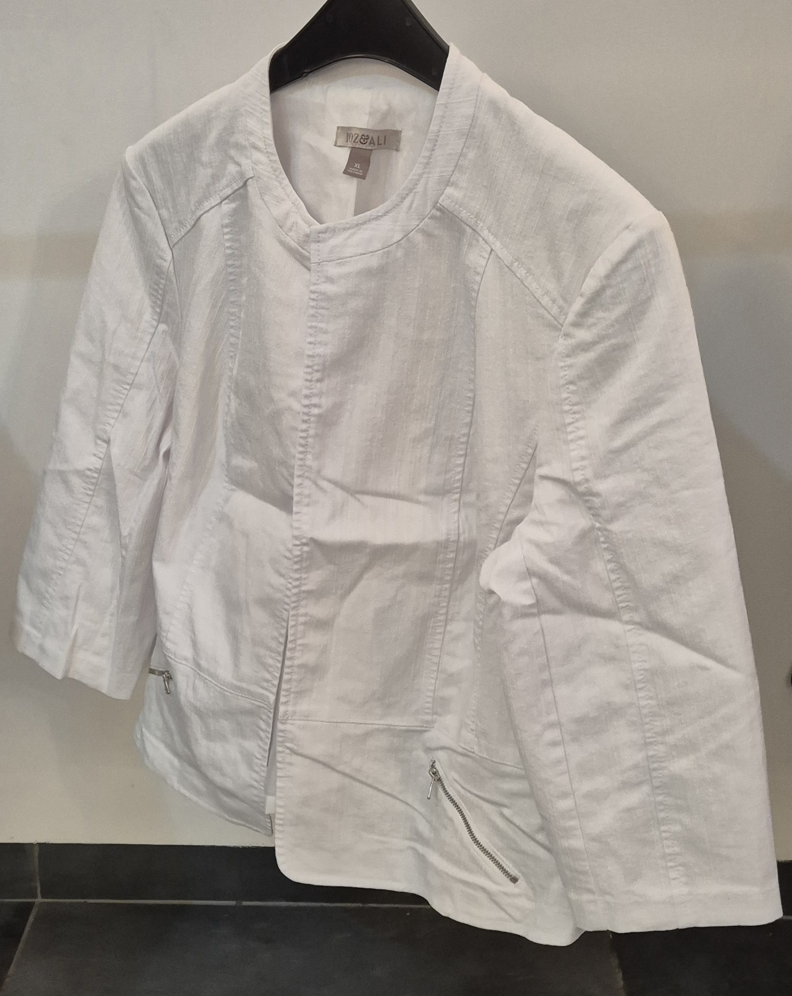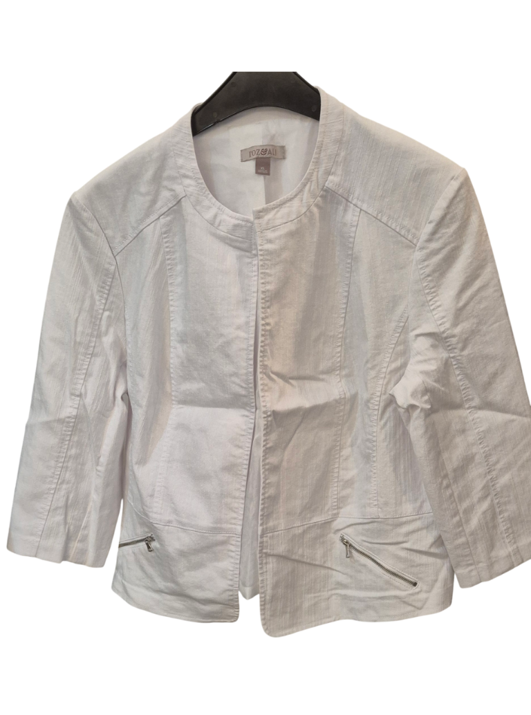 ז’קט וינטג’ סתווי יפיפה, לבן שלג, גזרה גבוהה, ביטנה, כריות לכתפיים, XL, של רוז ואלי, ללא פגמים, קרעים או כתמים.