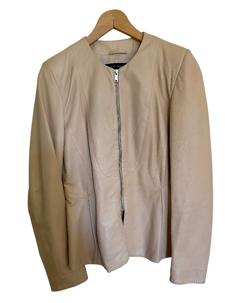 ז׳קט עור של Zara עם רוכסן בגזרה צמודה – קלאסי ואלגנטי