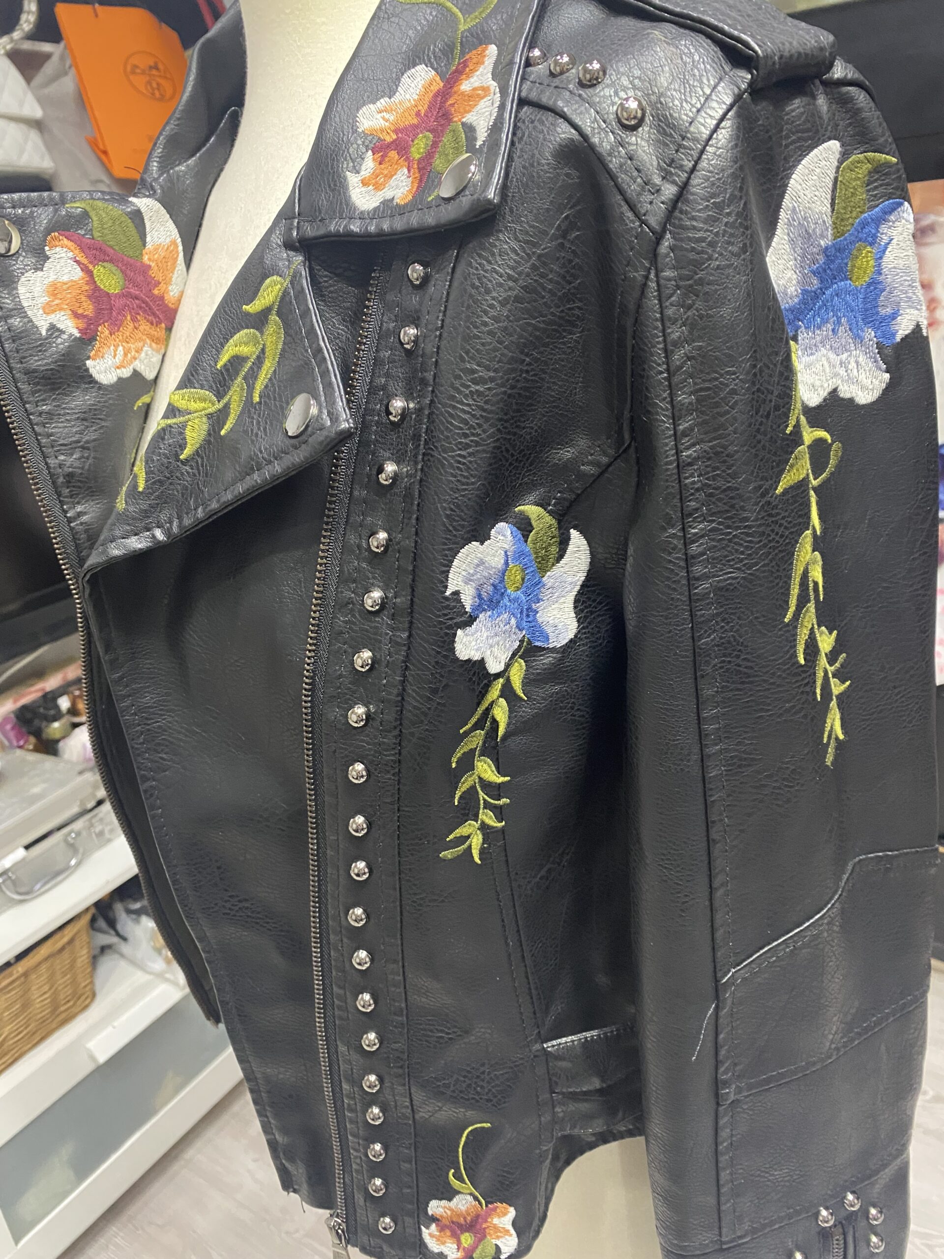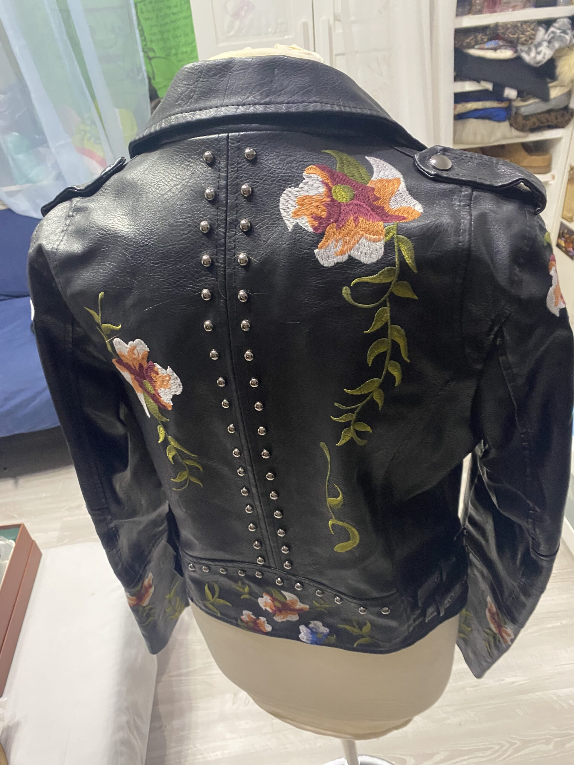 ז׳קט עור עם רקמות , לוק מטריף עם וי שירט גופיה בגד גוף או כופתרת, גזרה מעולה