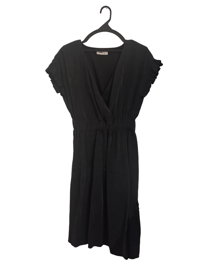 שמלת מידי שחורה עם כיסים בצדדים וקשירה בגב
