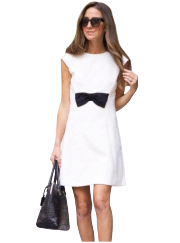 Authentic Kate Spade white dress with black bow as seen on Arielle Charnas and Zoey Deschanel