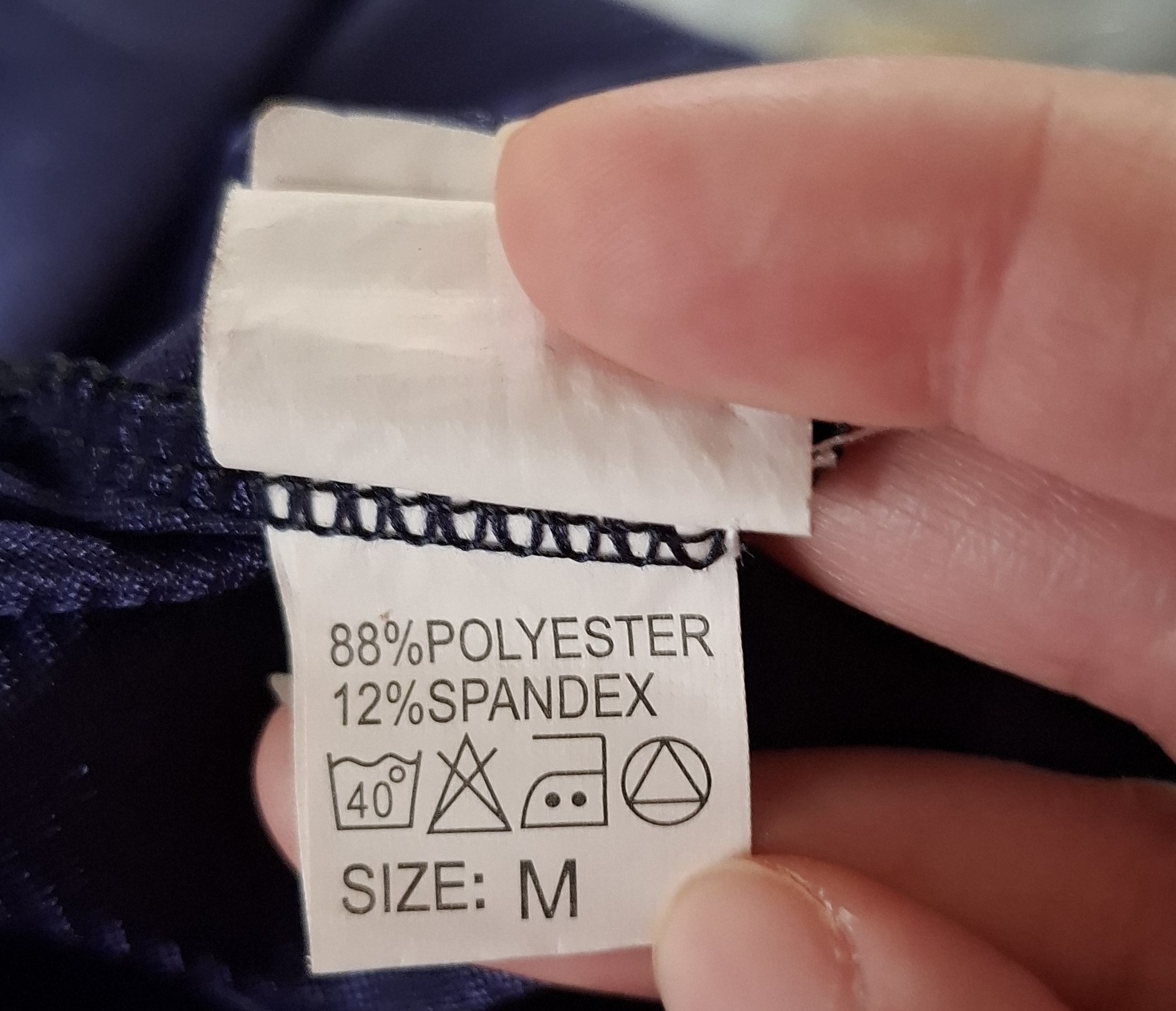 סוגי בדים: 88% פוליאסטר, 12% ספנדקס