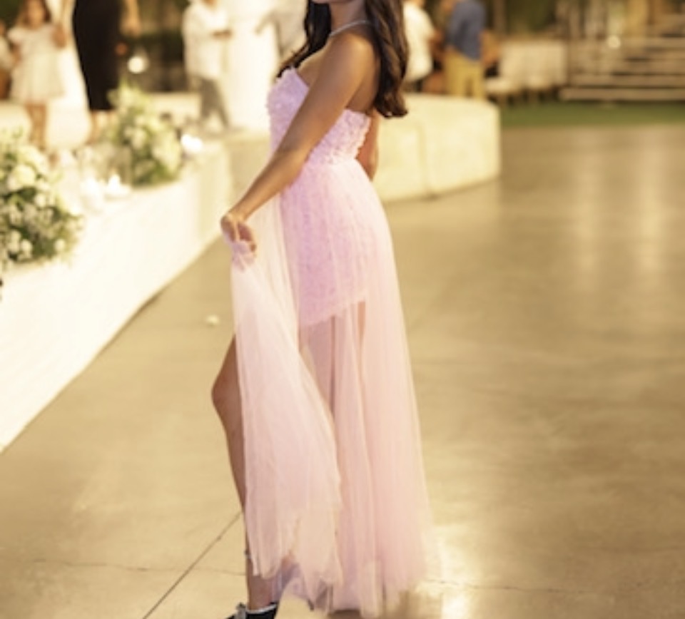שמלת ערב מיני עם שובל תחרה מאחורה מקדימה פתוח