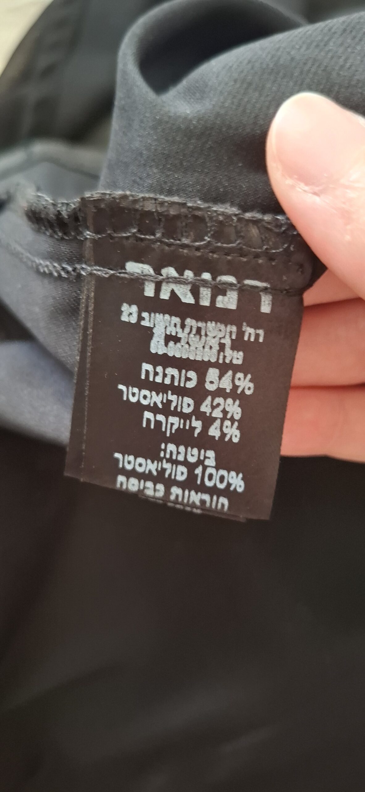 סוגי בדים: 54% כותנה, 42% פוליאסטר, 4% לייקרה