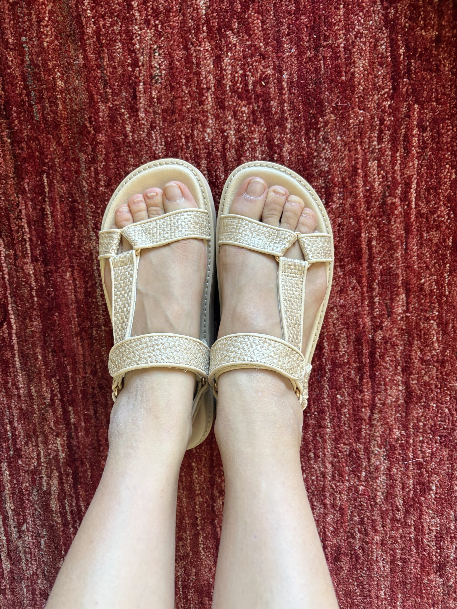 סנדלים חדשות ומושלמות על הרגל של סטיב מאדן.