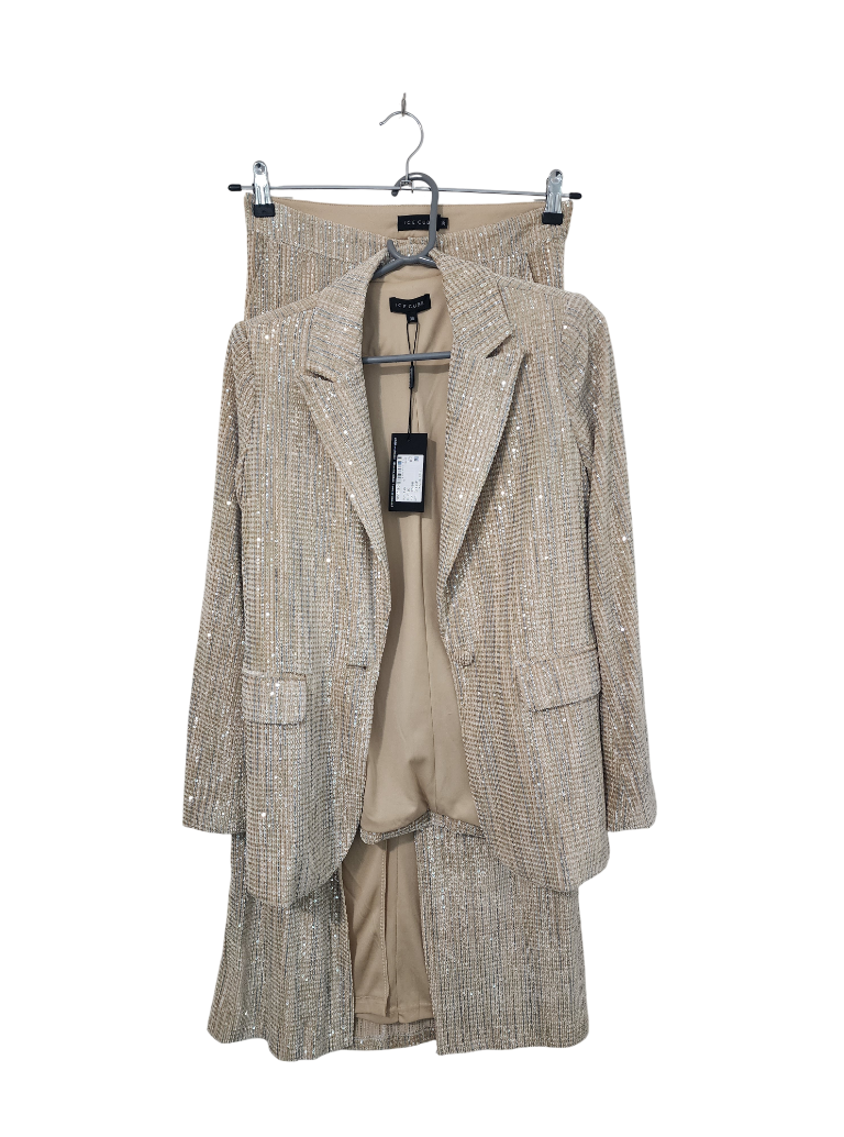 חליפה 2 חלקים ג’קט וחצאית מבד קטיפה פייטים