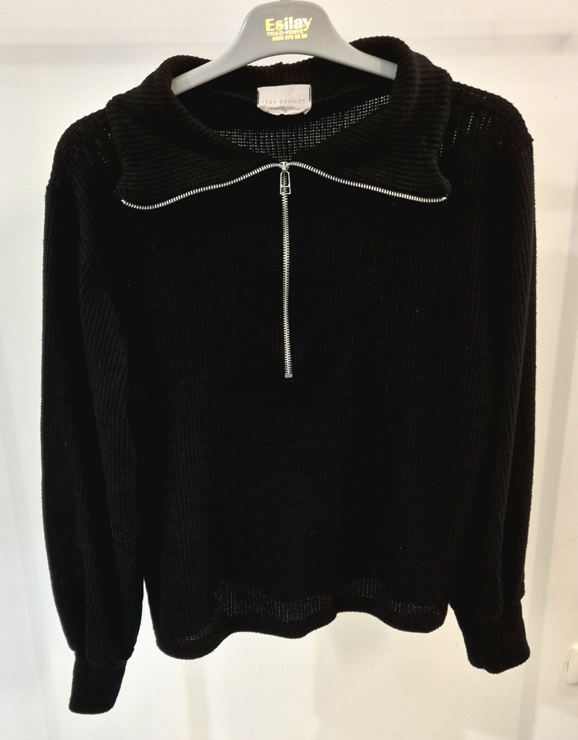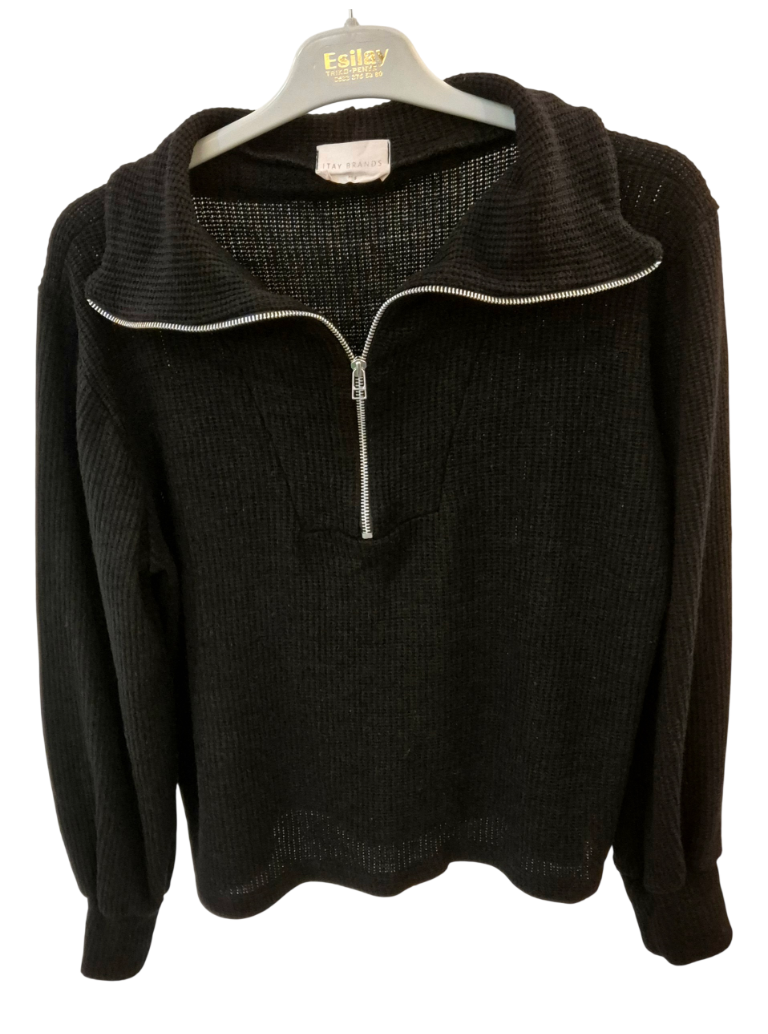 חולצה ארוכה מבד וופל שחור עם רוכסן חצי של