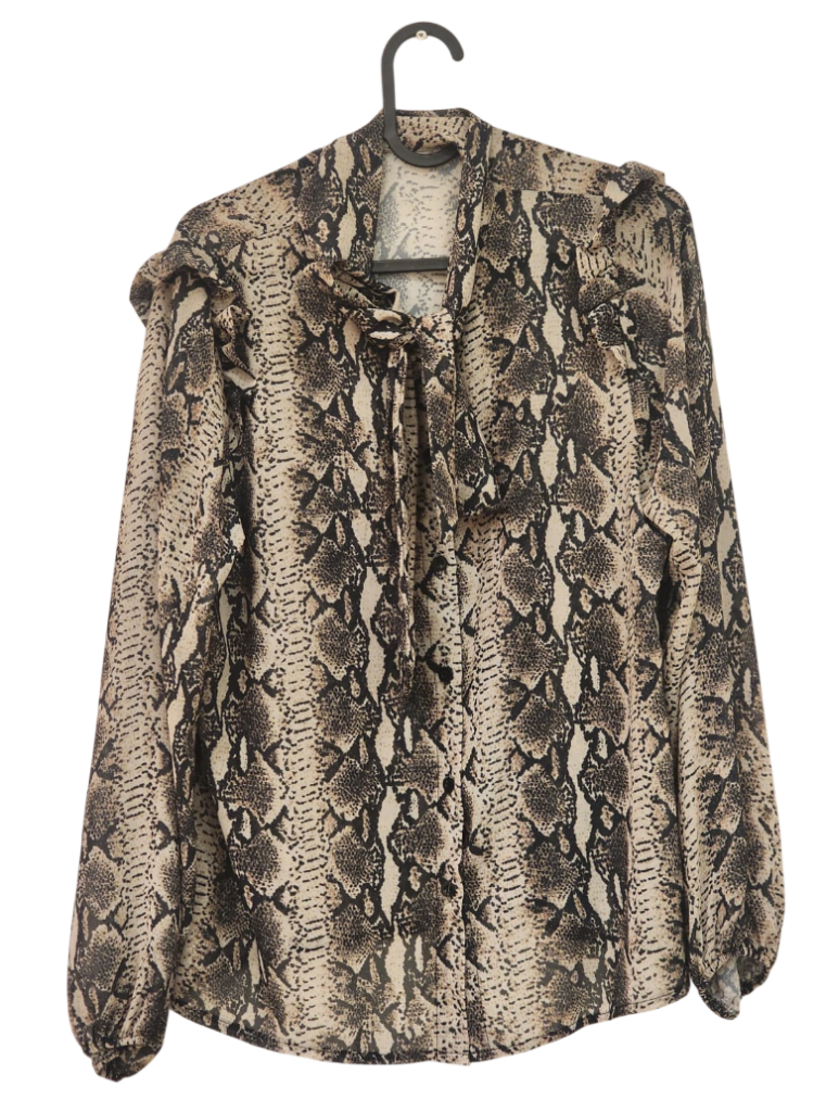 חולצה וינטג’ מבית “מנגו” שרוולים רחבים, קשירה בצוואר. מעט שקופה. נלבשה 3 פעמים.