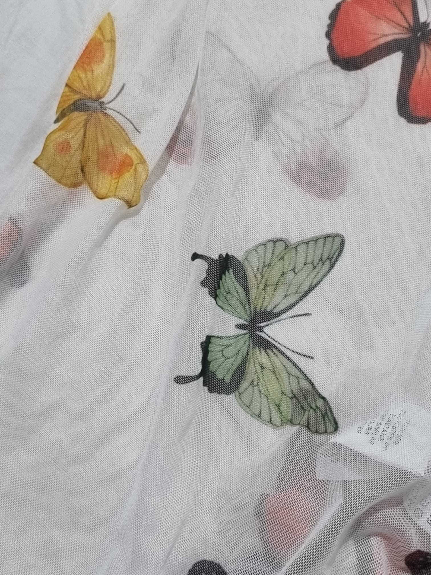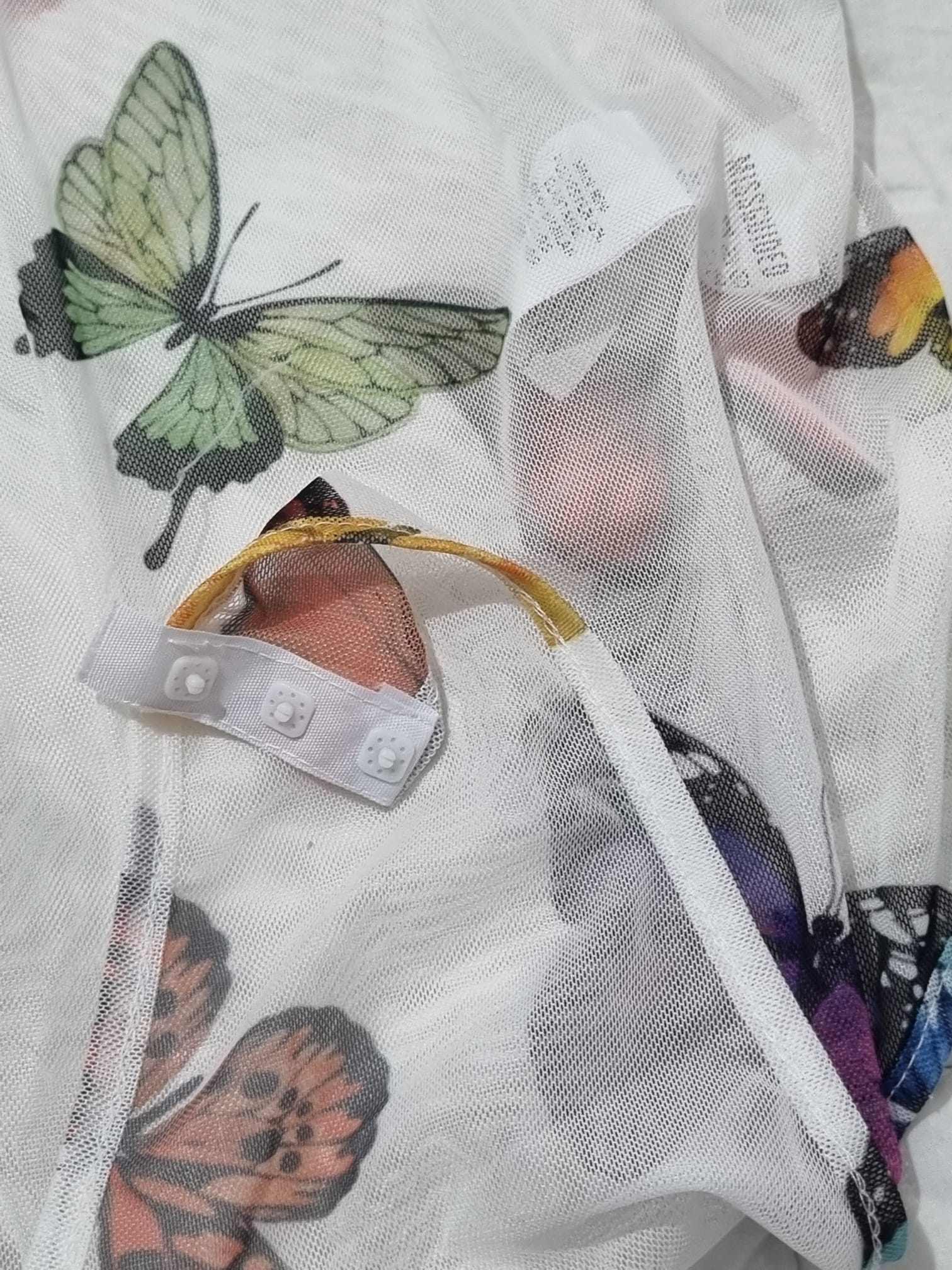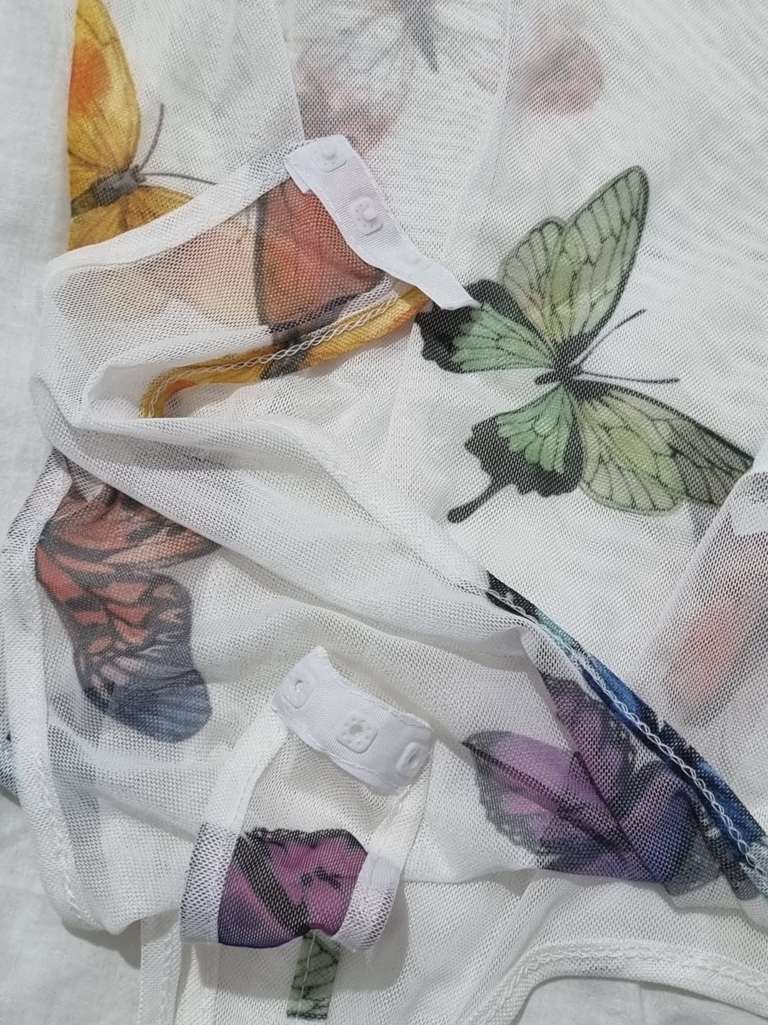 חולצה שקופה עם הדפסי פרפרים וקליפס לסגירה באזור המפשעה. לא נלבשה מעולם!