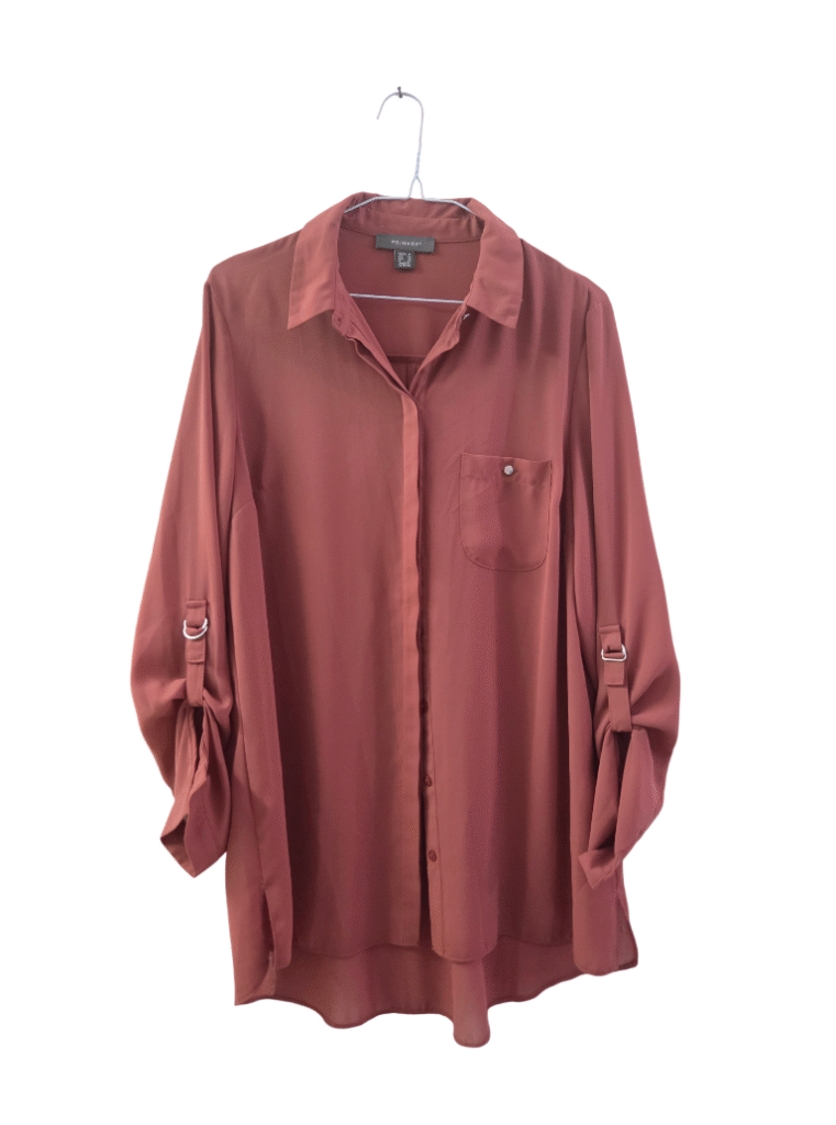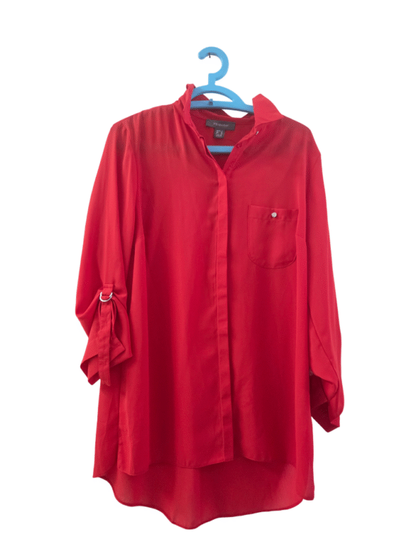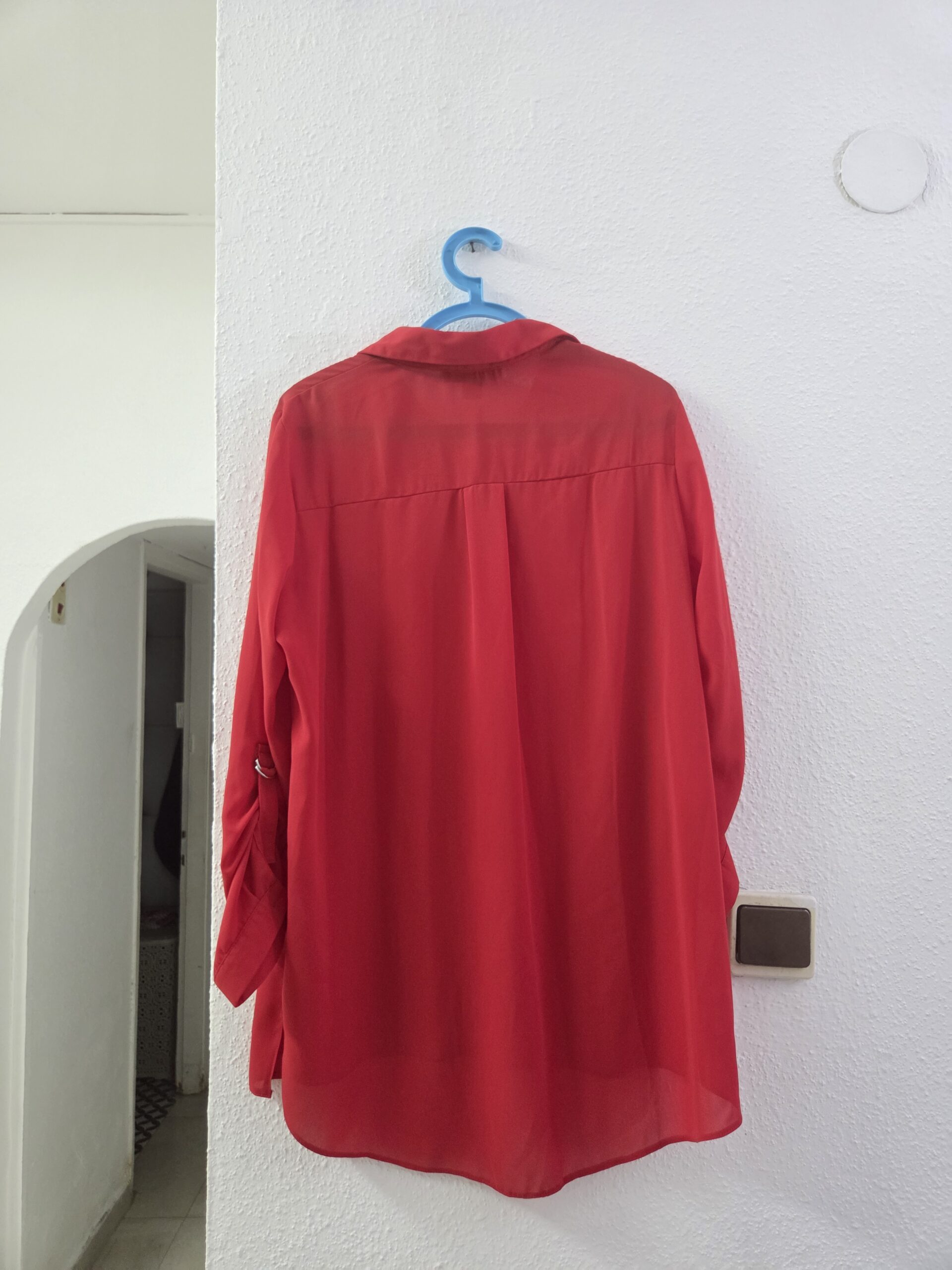 חולצה מכופתרת בצבע אדום. הבד קצת שקוף. נלבשה פעמים בודדות