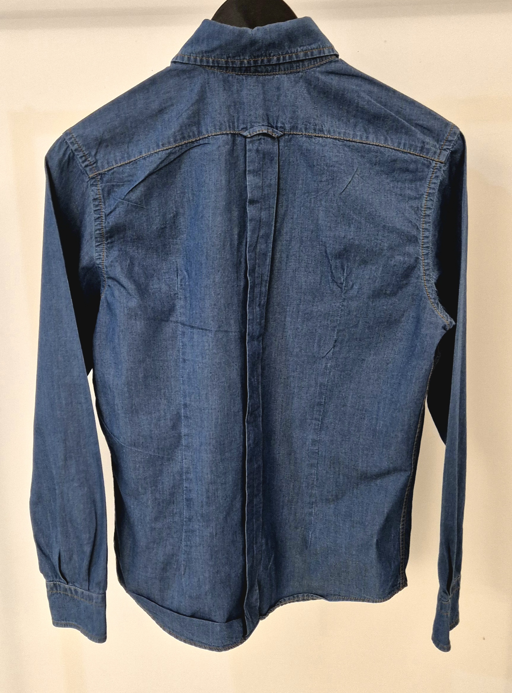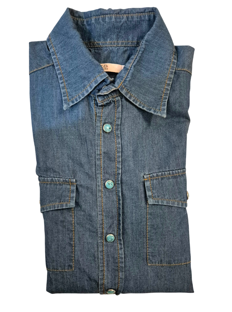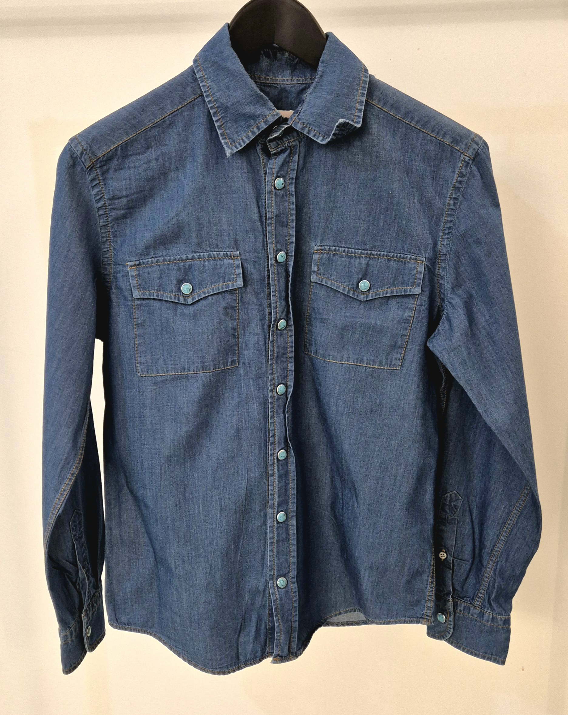 חולצת ג’ינס מכופתרת ארוכה כחולה ויוקרתית של