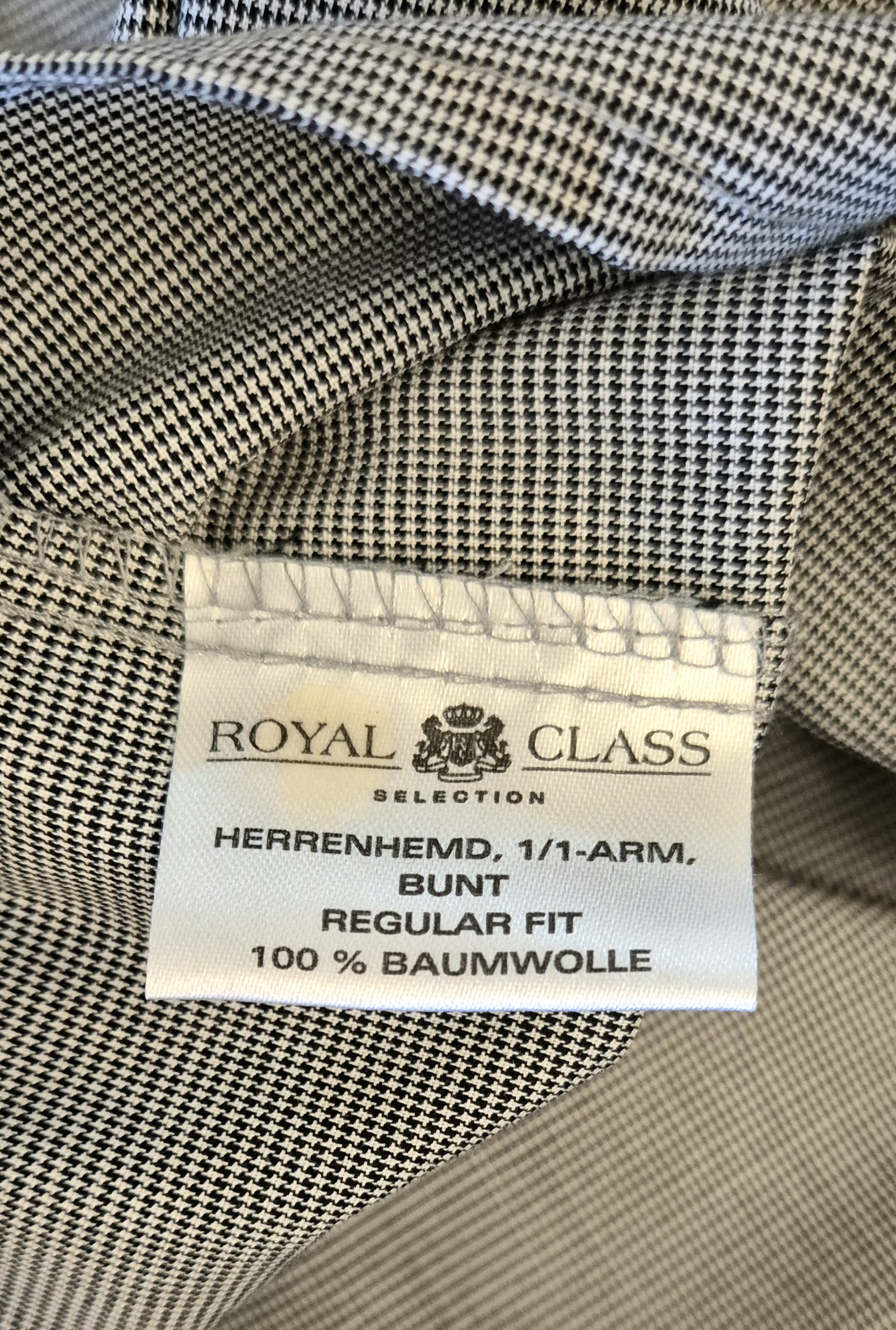 חולצה מכופתרת ארוכה משבצות אפור ולבן 44