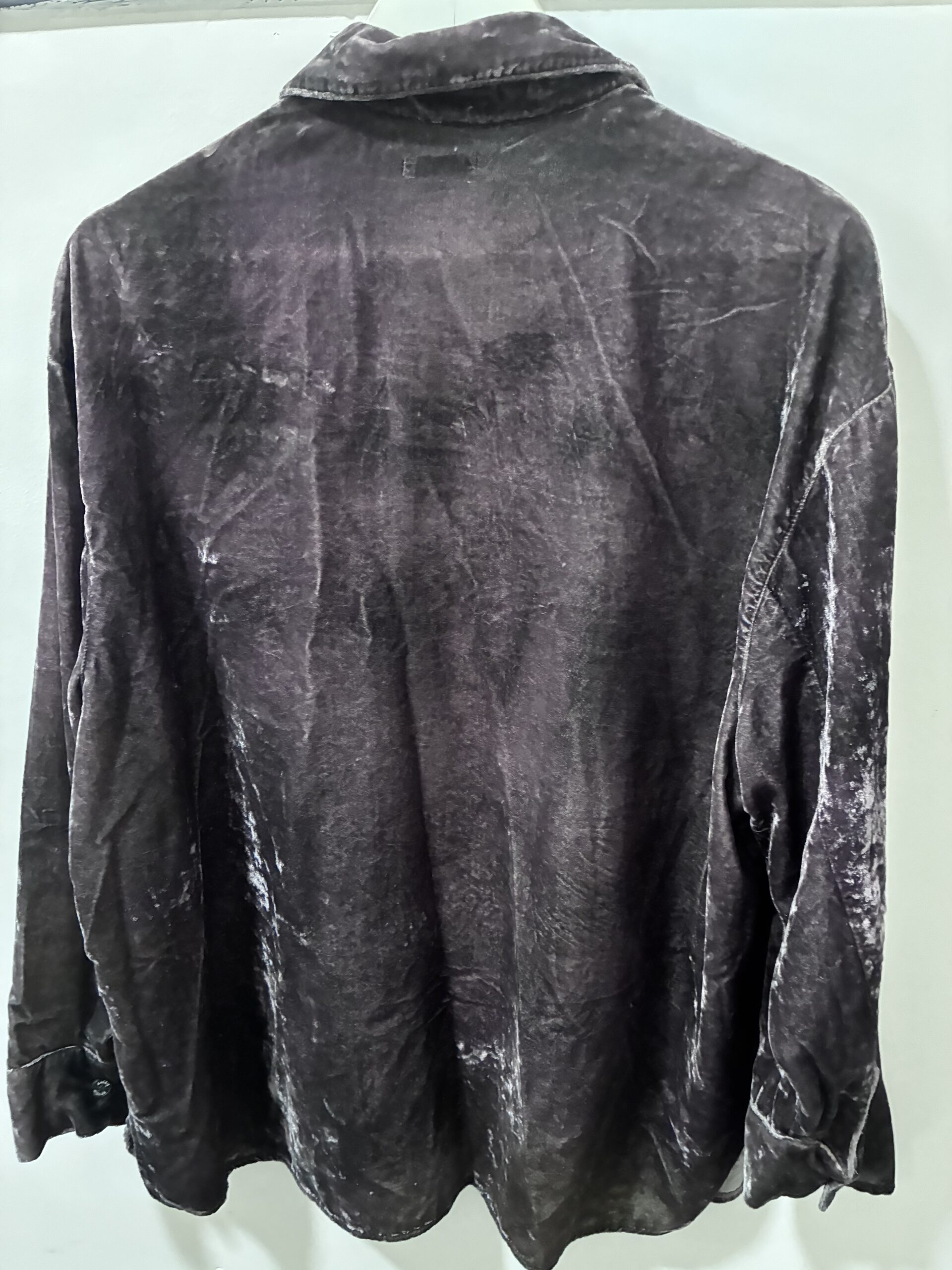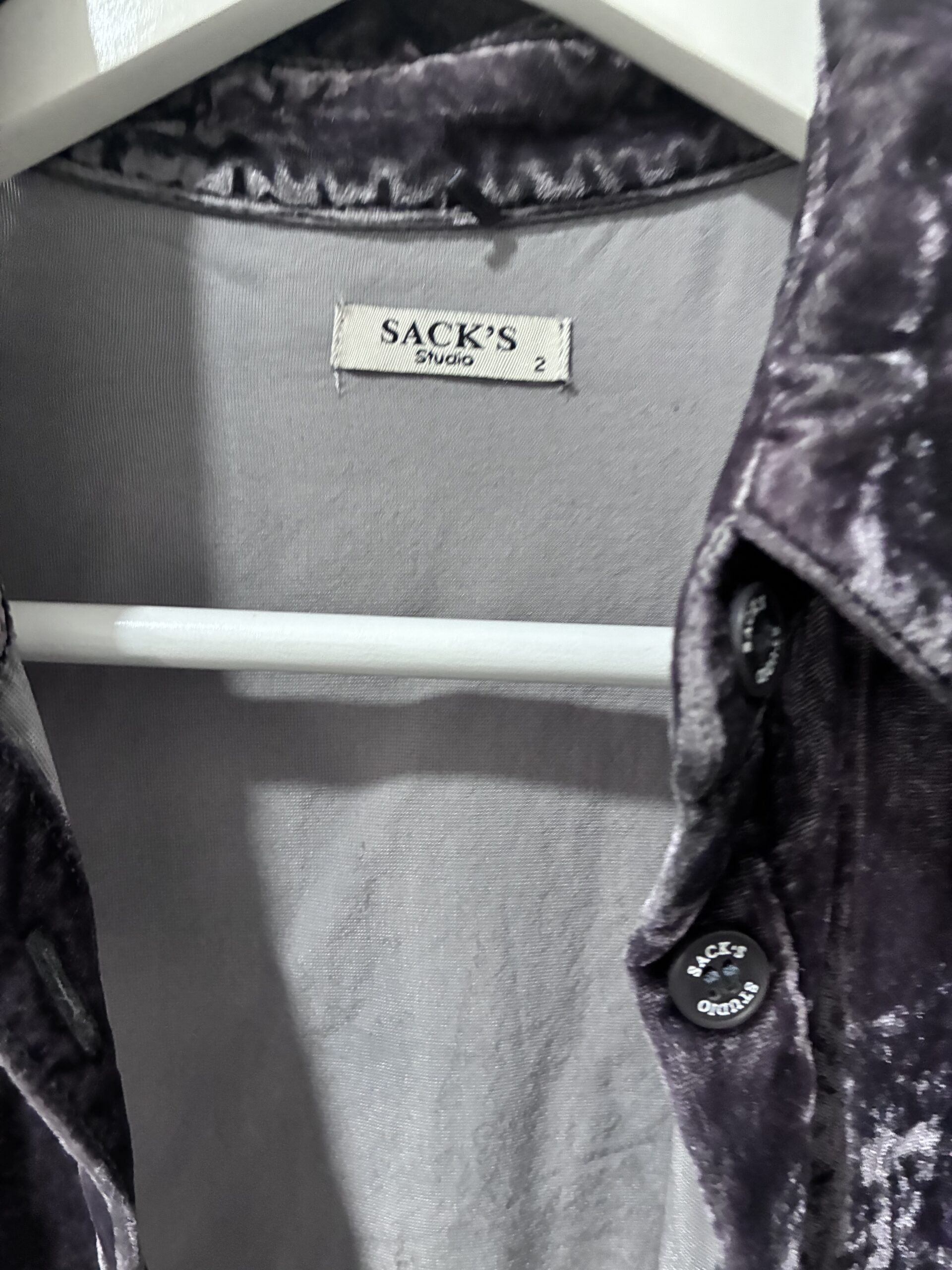 חולצת קטיפה של סאקס אפור סגול יפה גם מעל כחולצה פתוחה