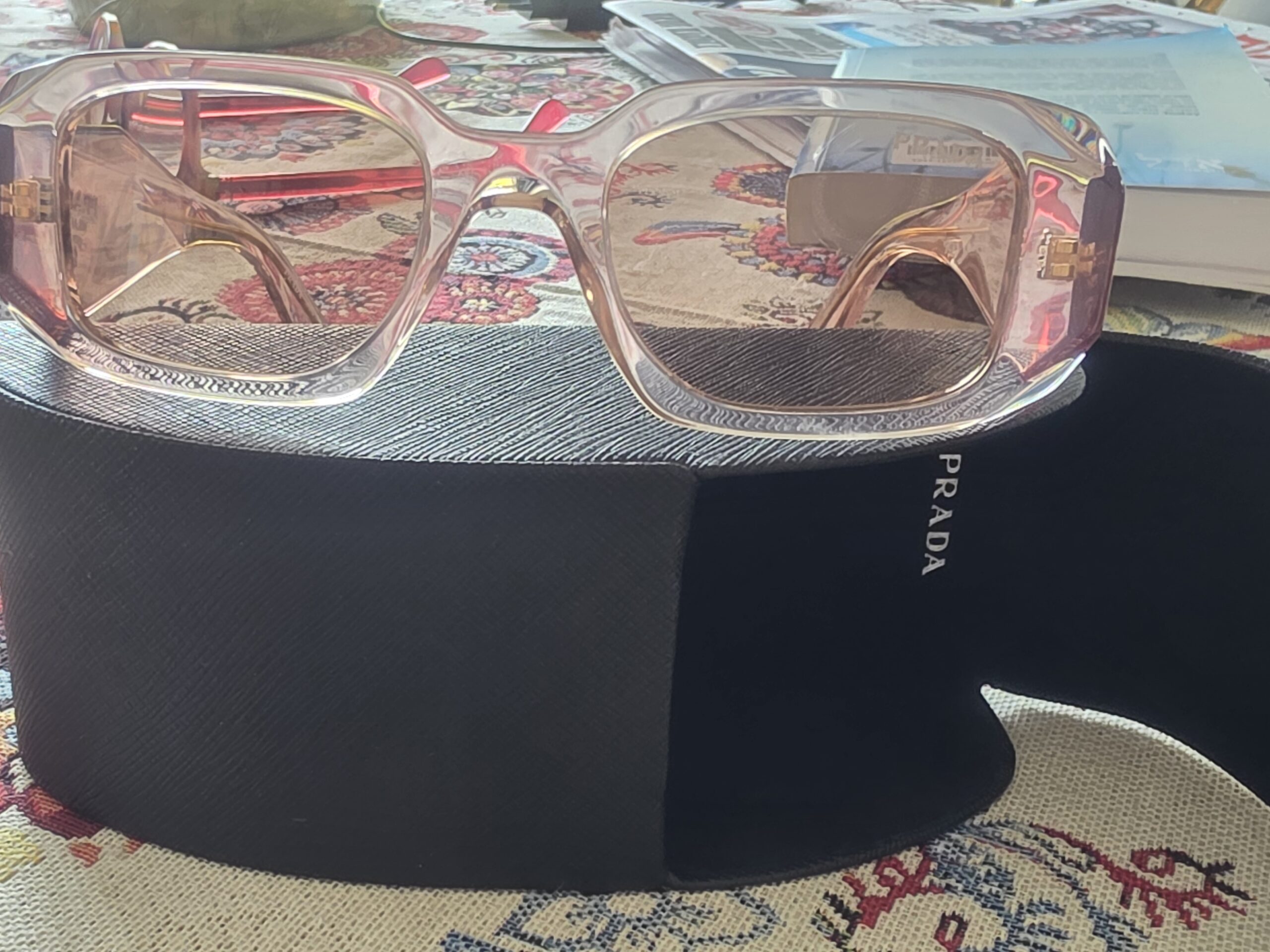 משקפי שמש פראדה מקורי ניקנו בקניון דובאי ולא מתאימות לי. מצב חדש. ורוד שקוף. קופסא מקורית ותעודה.