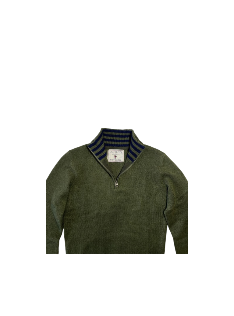 סודר איכותי בצבע ירוק זית הרכב בד צמר ואקרילי חצי רוכסן אופנתי ומחמם.