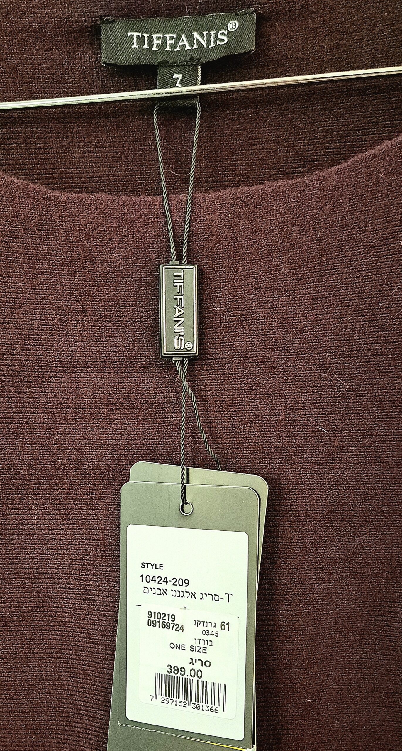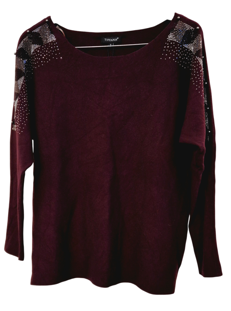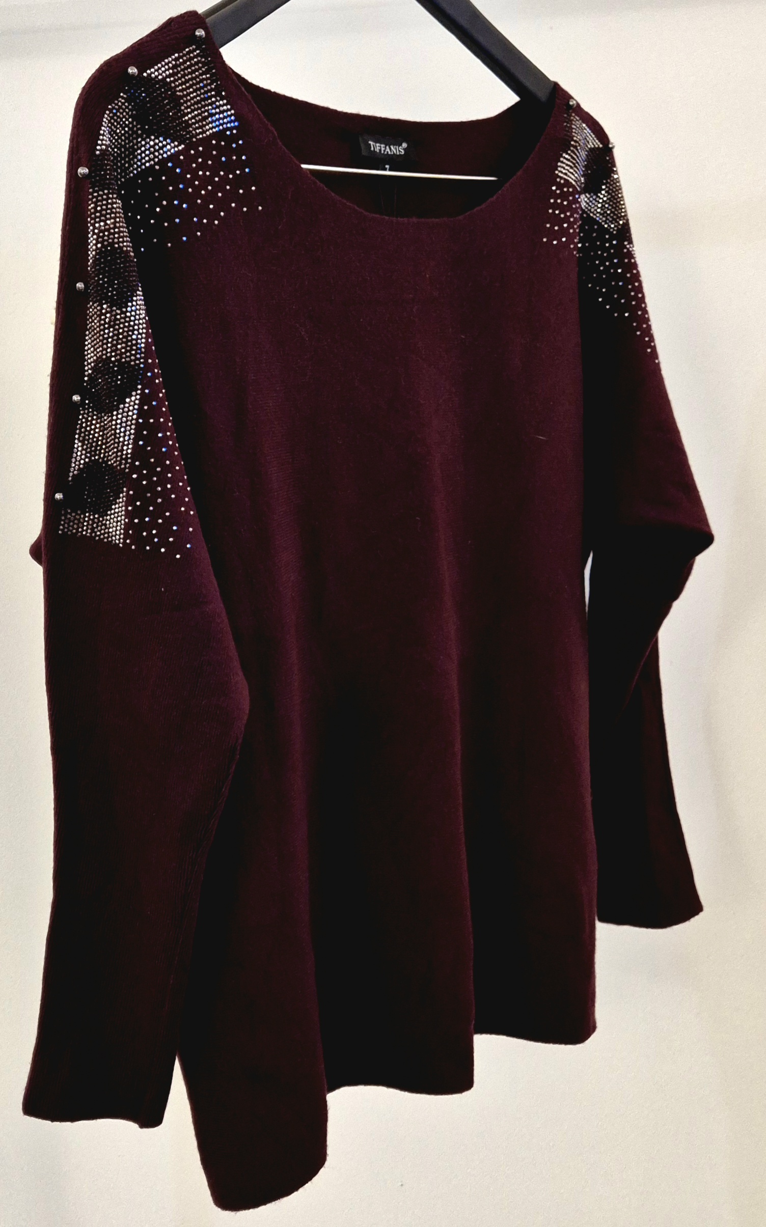 סריג אלגנטי בורדו משובץ אבנים (לא כבד), מידה: