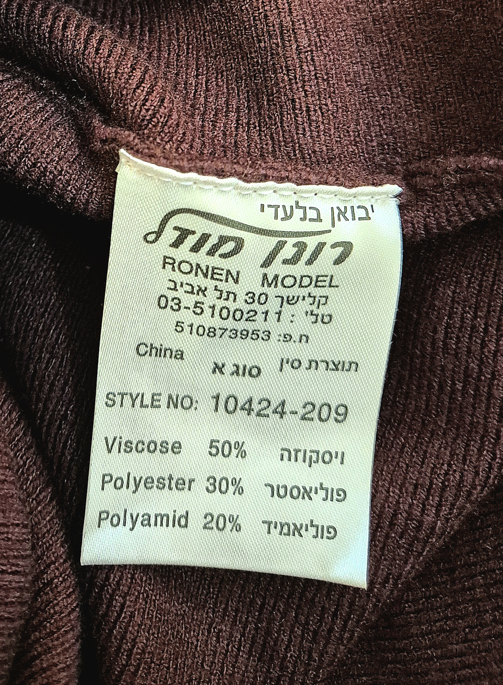 מעולם. הרכב בד: 50% ויסקוזה 30% פוליאסטר