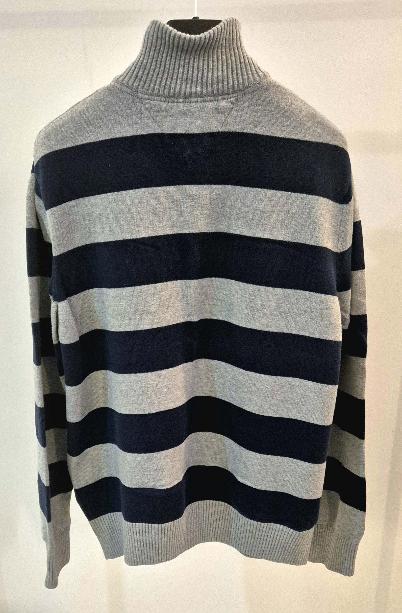 סוודר מפוספס, רבע רוכסן, אפור בהיר כחול כהה,