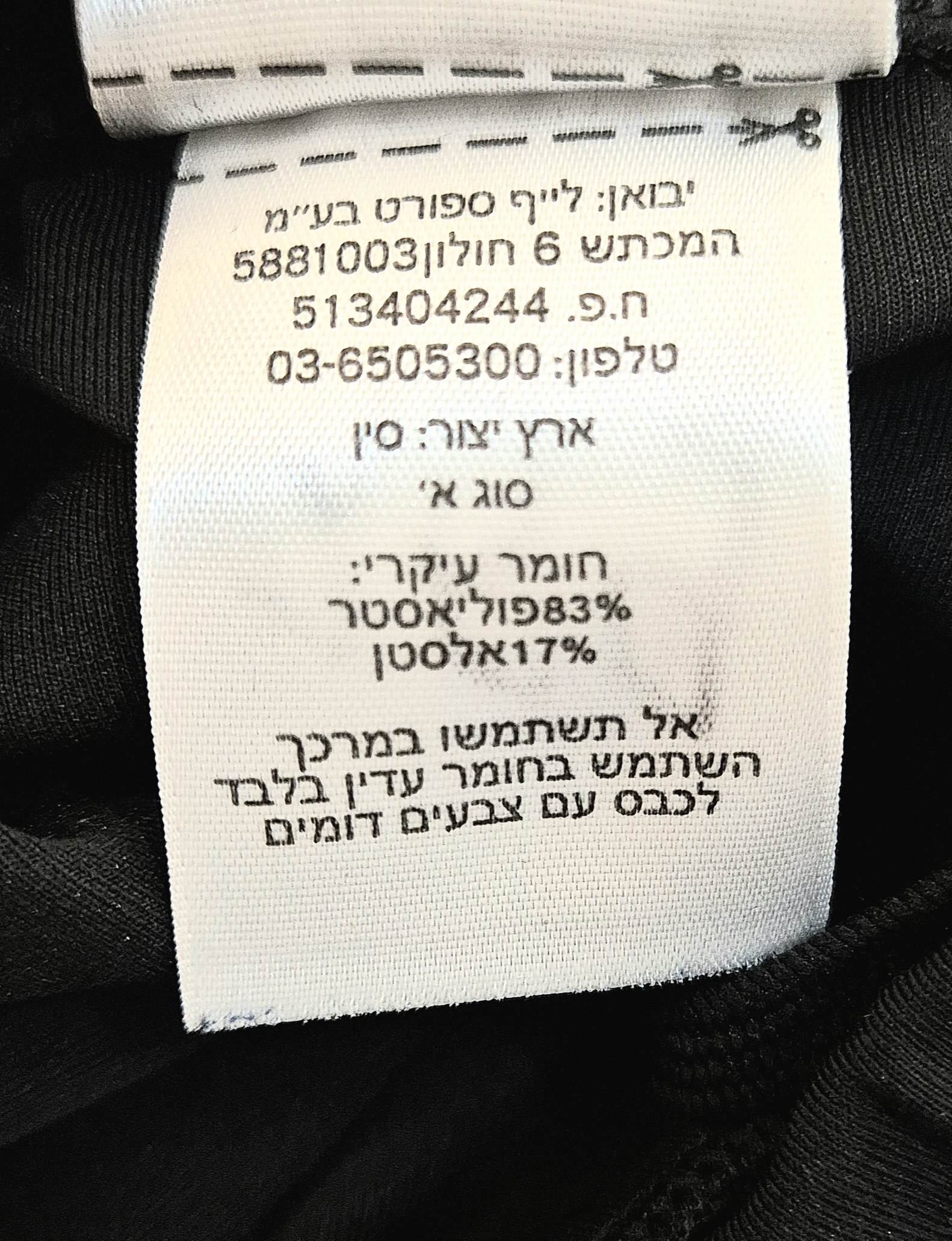 פגם כלשהו, 83% פוליאסטר 17% אלסטן.