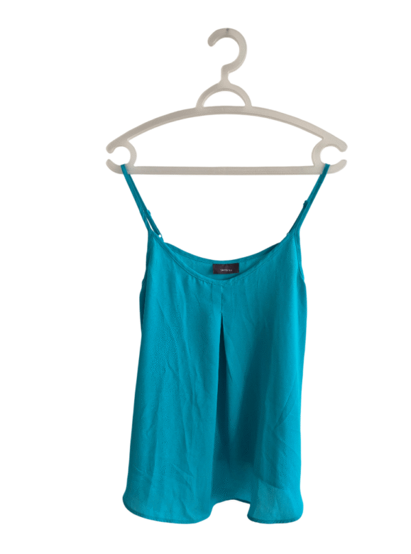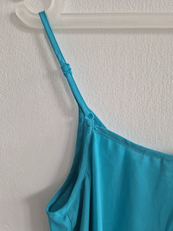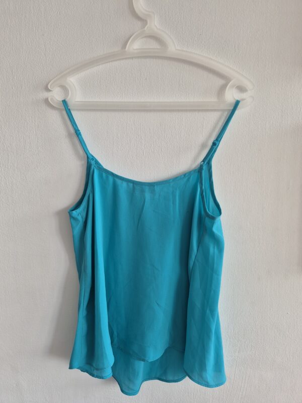 גופייה מבד נעים בצבע תורכיז-כחול, עם כתפיות מתכווננות. נקנתה בחו”ל ולא נלבשה.