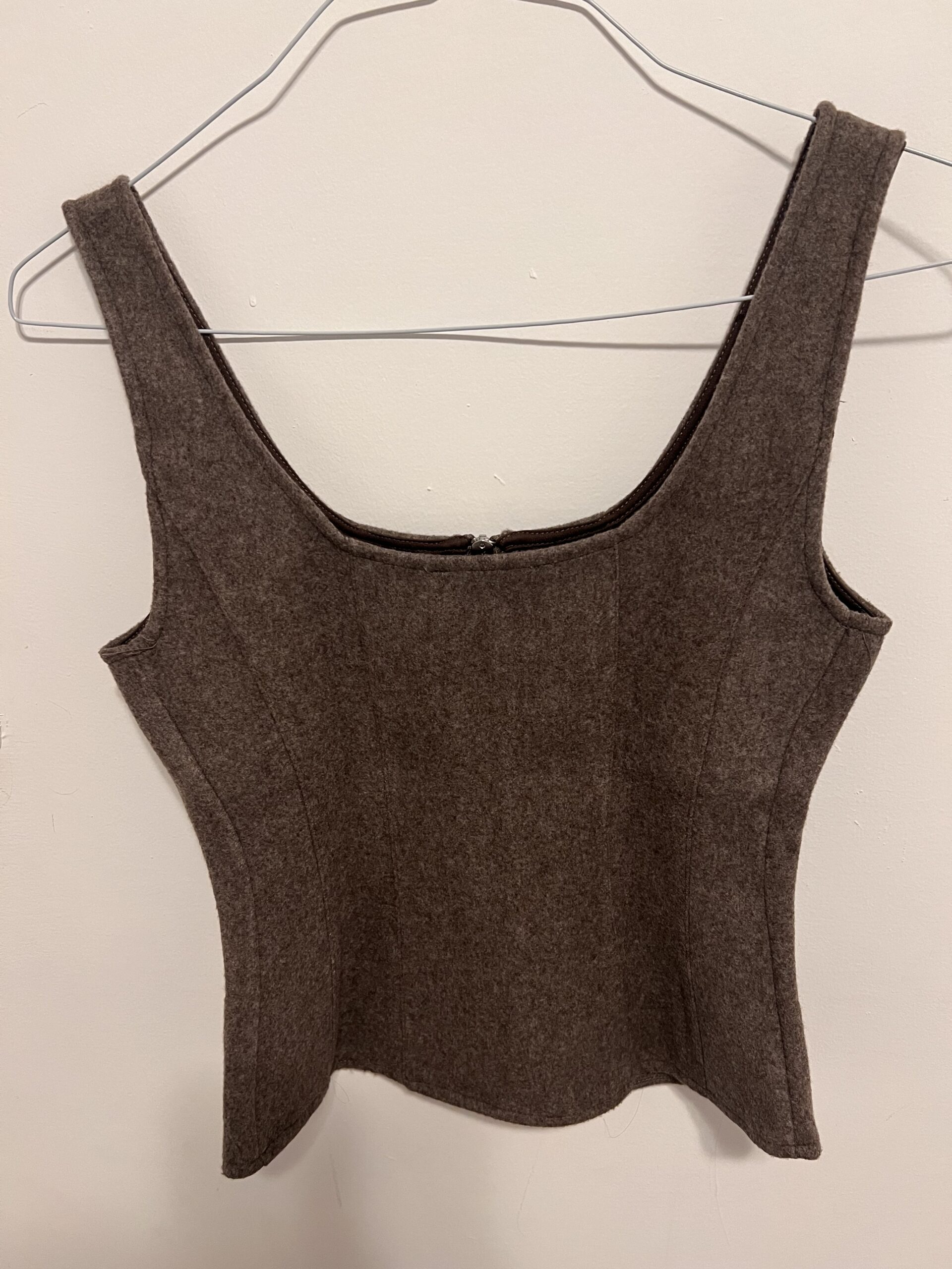 גופיה בגזרת מחוך עם רוכסן מקדימה, צבע חום בהיר, בד נעים. של זארה, מידה s, לא נלבשה.