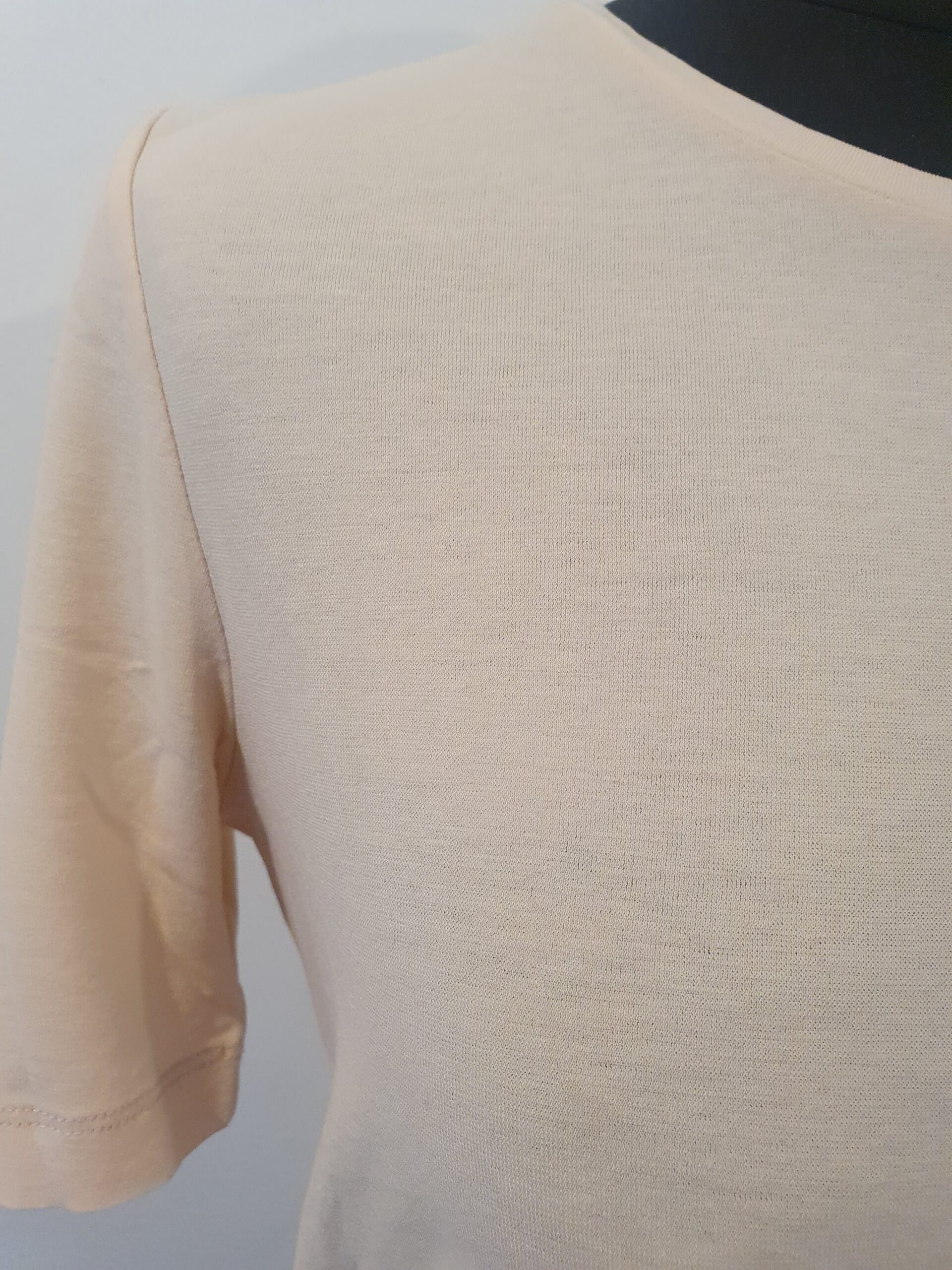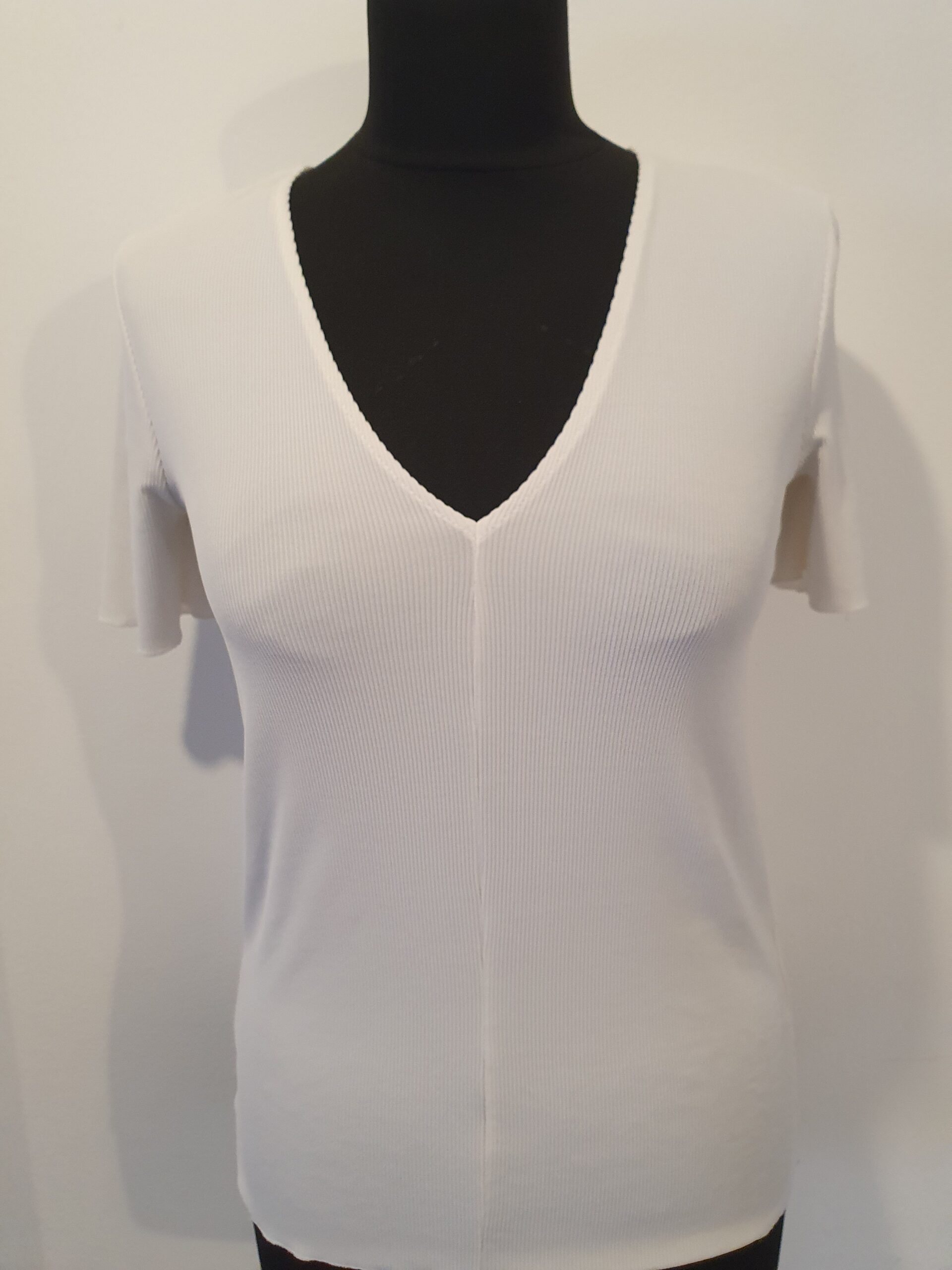חולצת וי לבנה של ZARA מידה S, חולצת סטרץ’ בצבע ורדרד של other stories & מידה 36 וחולצת סטרץ’ בצבע ב’ז של other stories & מידה 36