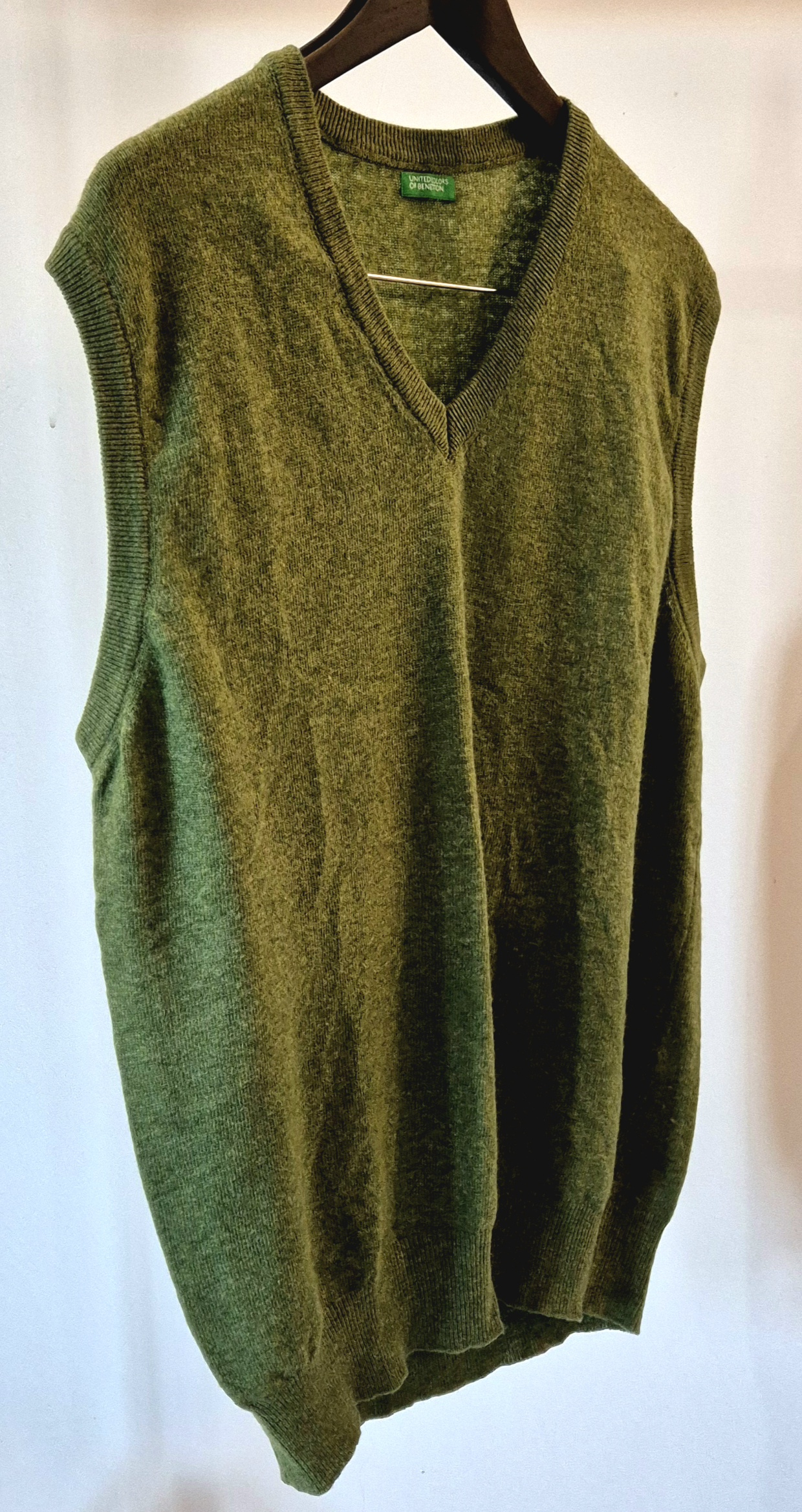וסט ירקרק ומרשים L של Benetton, ללא כתמים,